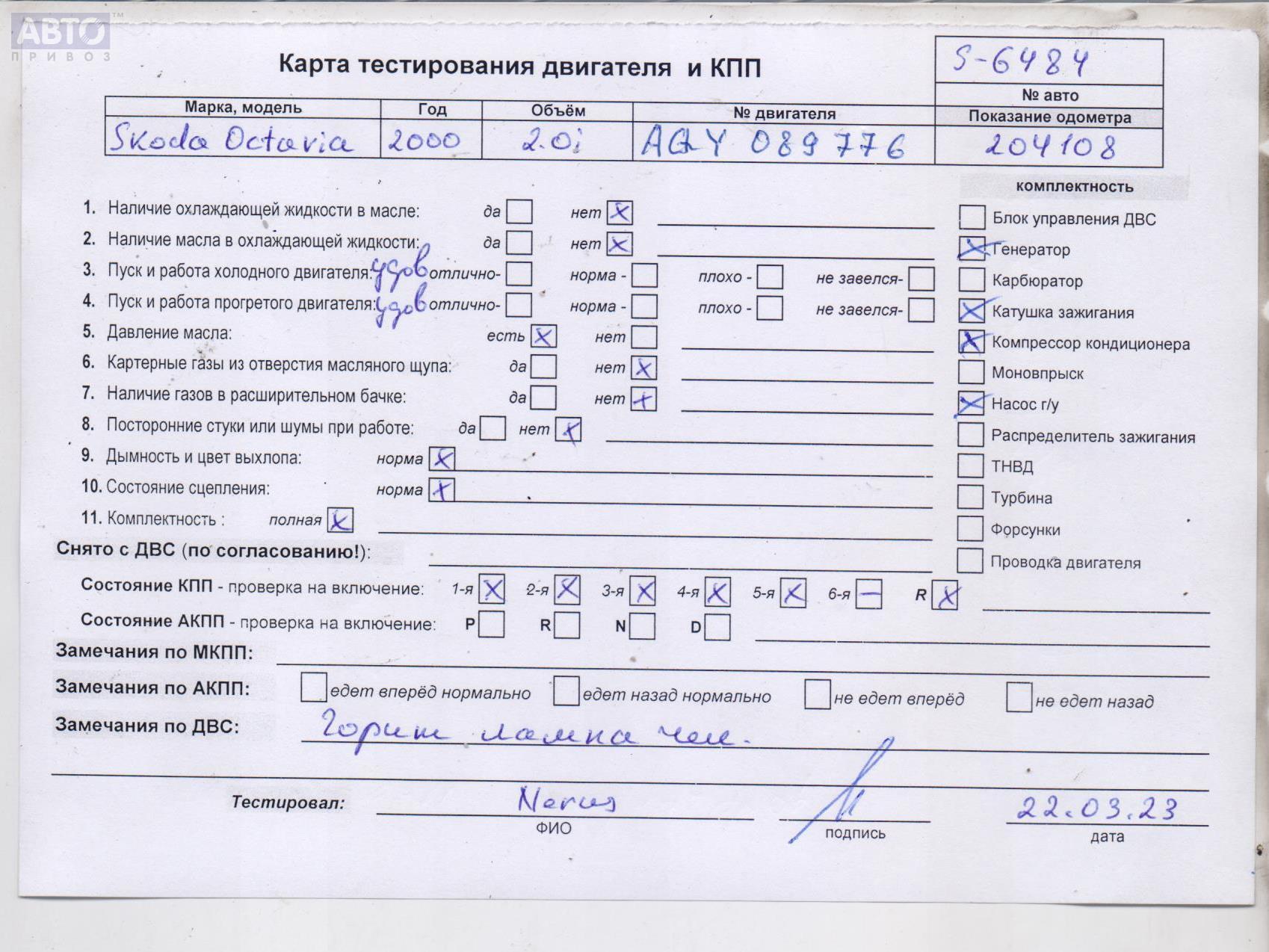 | Автомобиль / VIN: | S6484 TMBGE21U0Y8299452 |