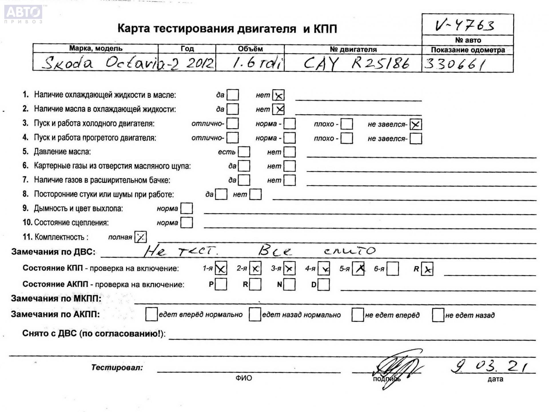 | Автомобиль / VIN: | V4763 TMBCT21Z9D2027964 |