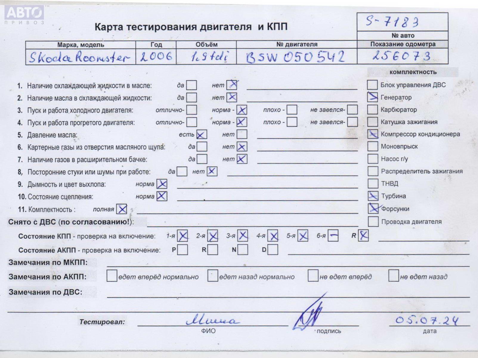 | Марка / Модель / Год: | Skoda Roomster 2006 |