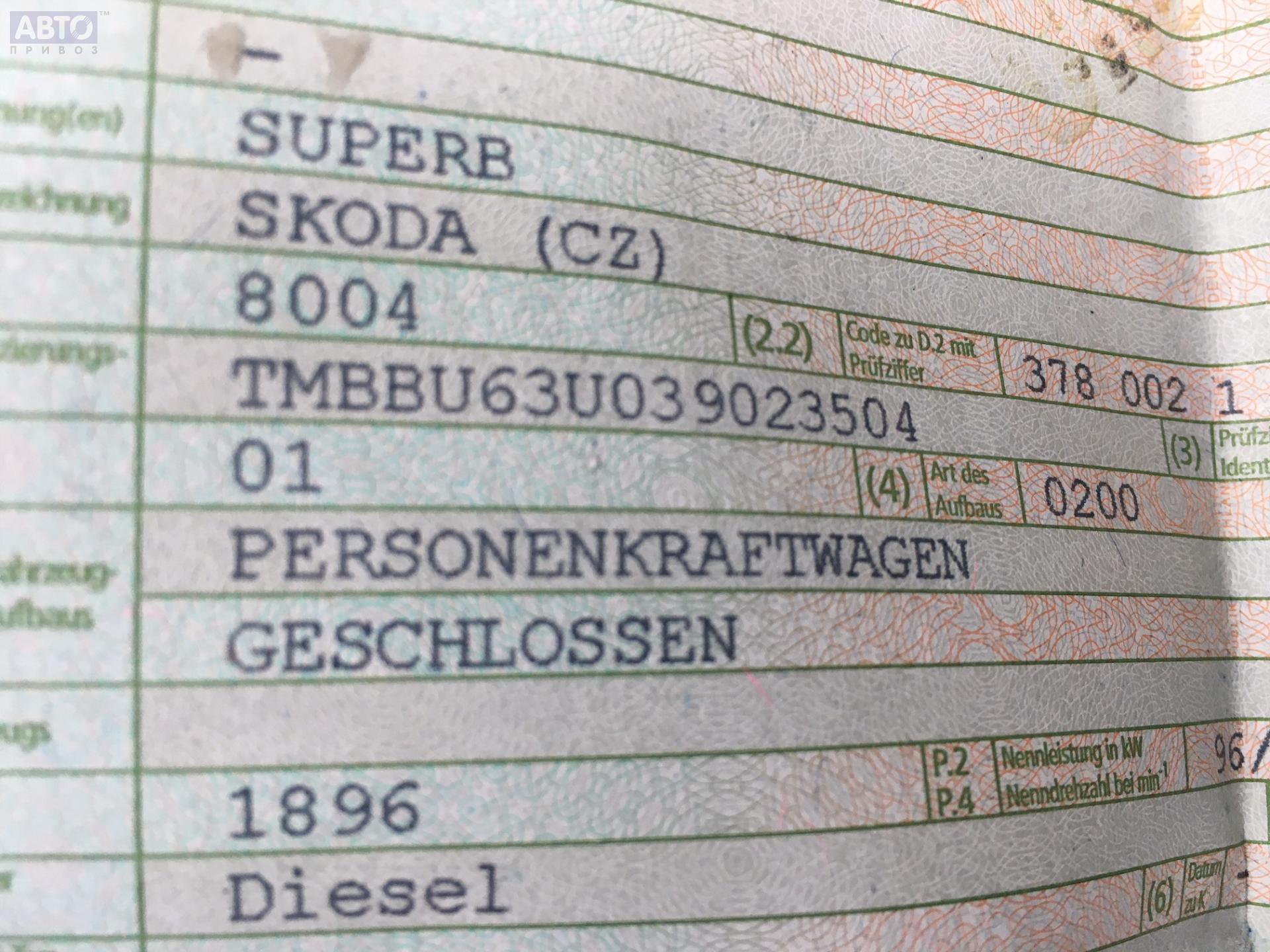 | Марка / Модель / Год: | Skoda Superb mk1 (B5) 2002 |