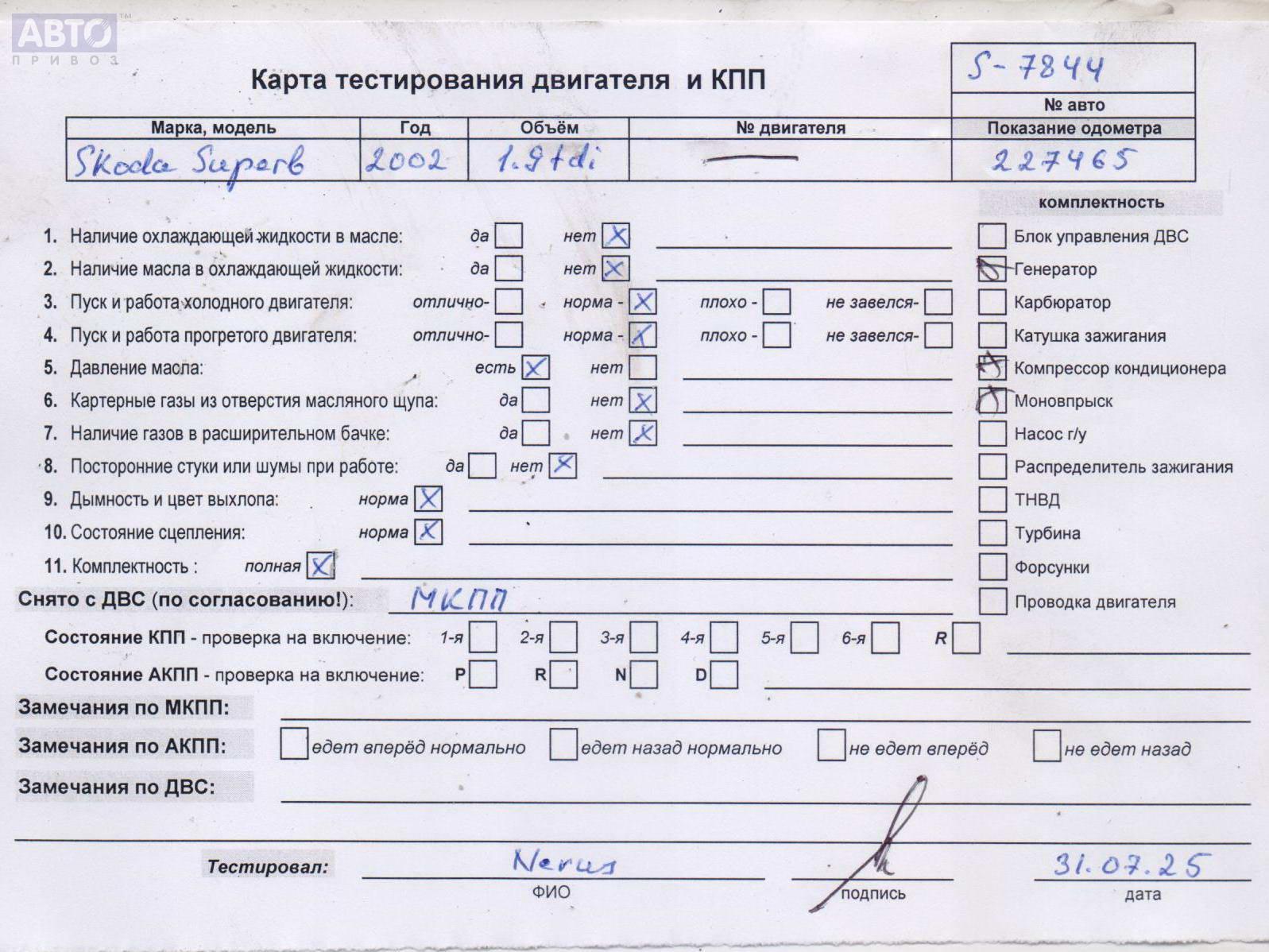 | Автомобиль / VIN: | S7844 TMBBU63U039023504 |