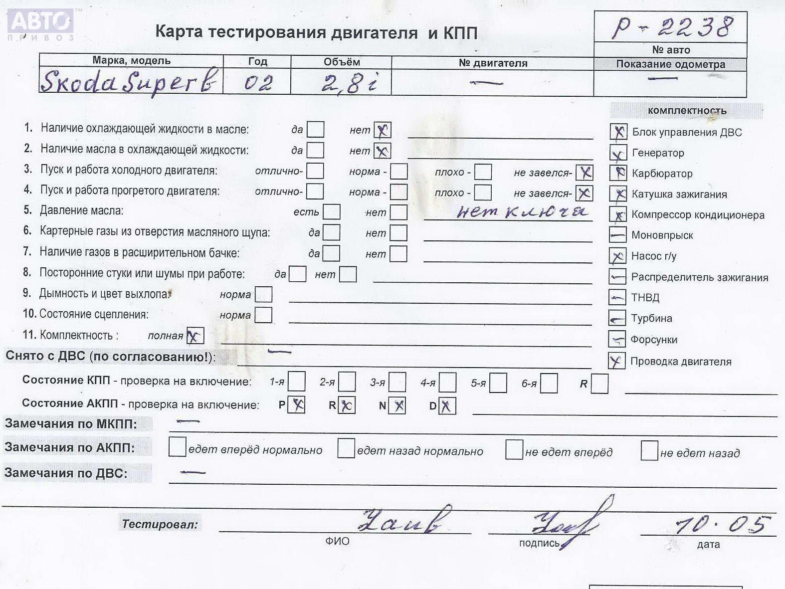 | Автомобиль / VIN: | P2238 TMBCT23U329010826 |