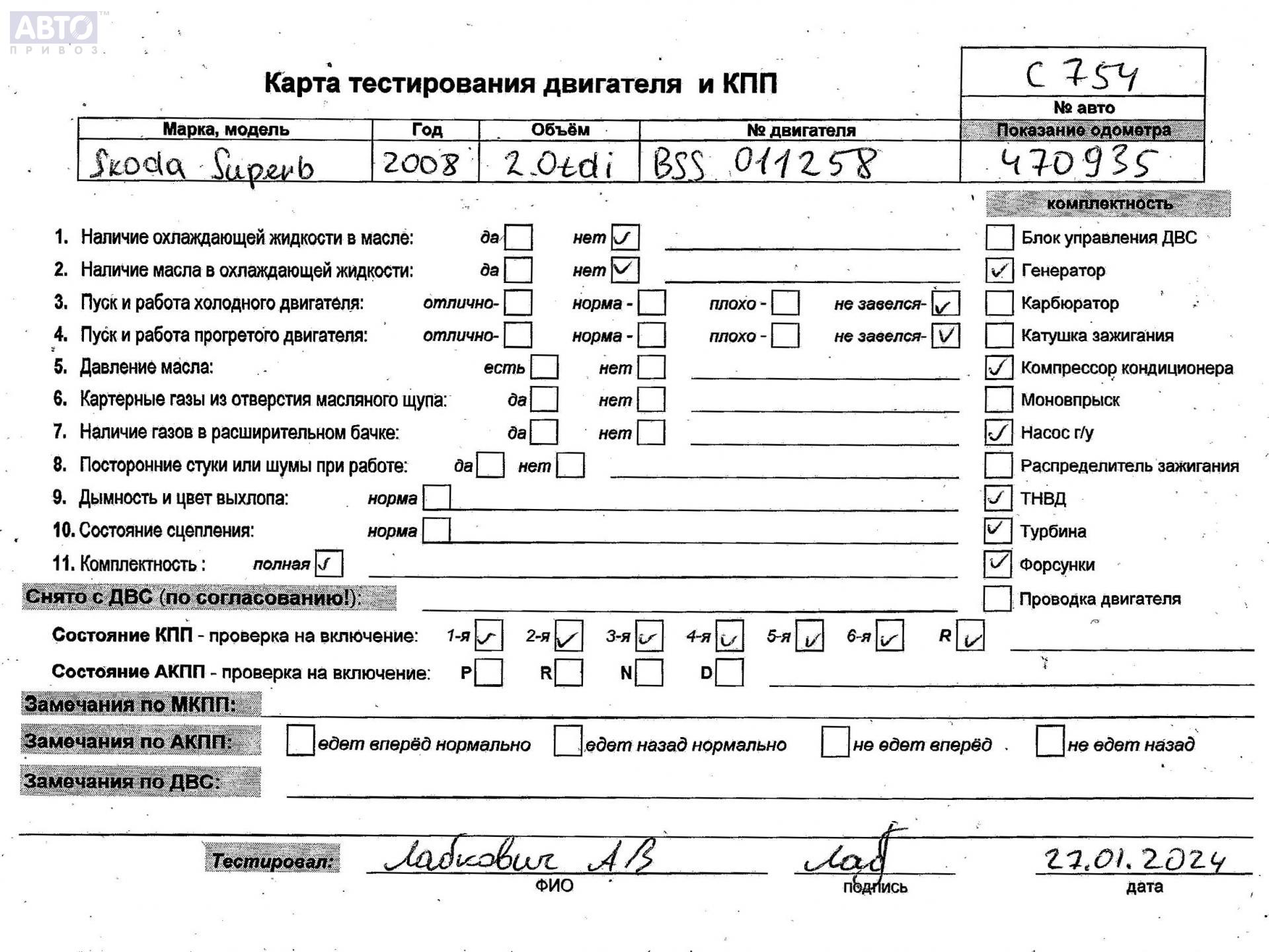| Марка / Модель / Год: | Skoda Superb mk1 (B5) 2008 |