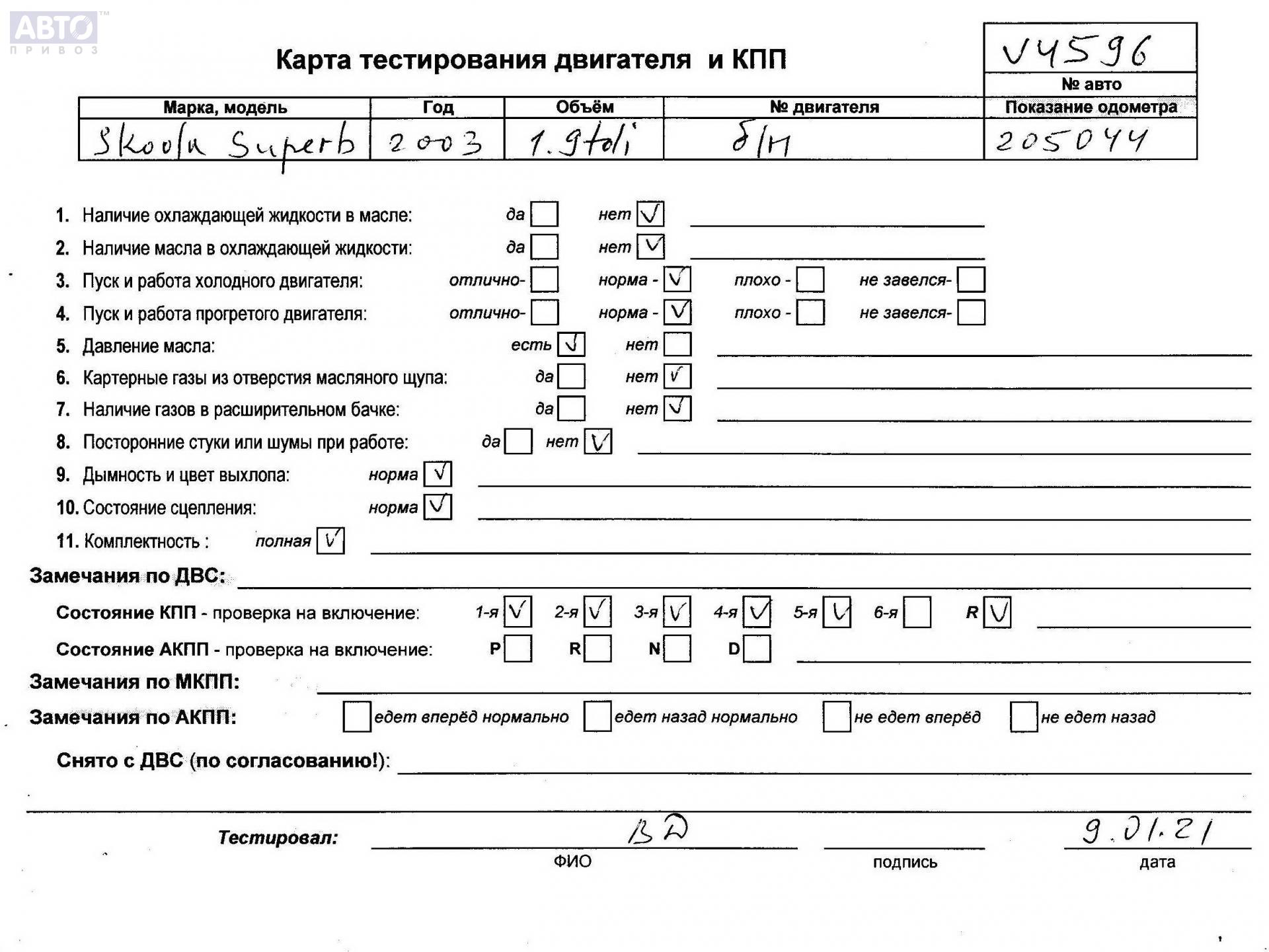 | Марка / Модель / Год: | Skoda Superb mk1 (B5) 2003 |