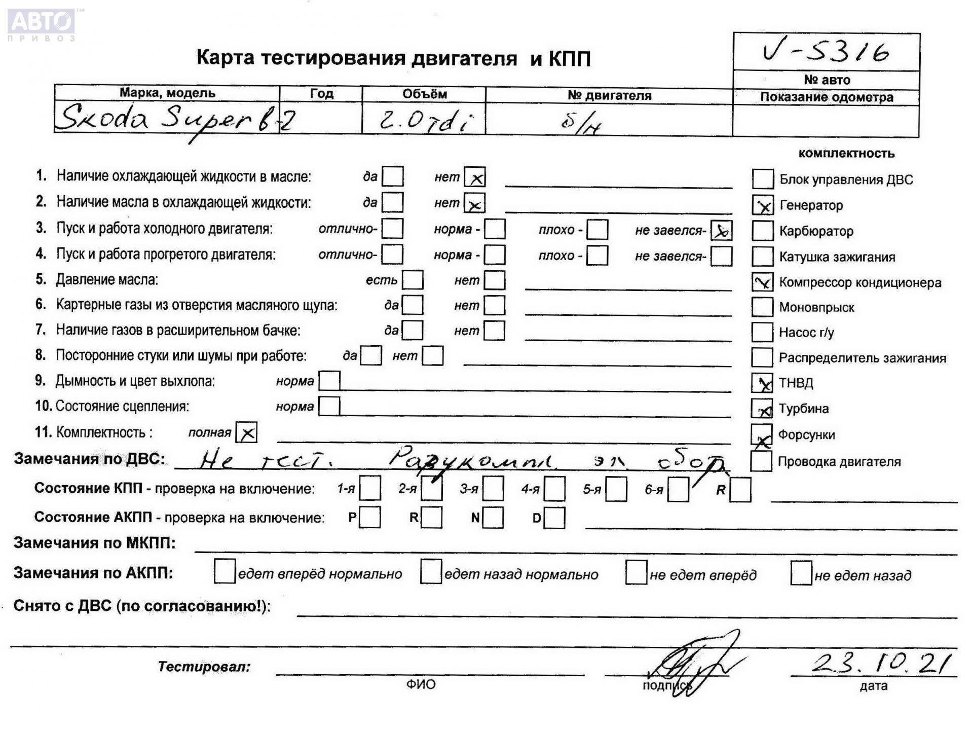 | Марка / Модель / Год: | Skoda Superb mk2 (B6) 2009 |
