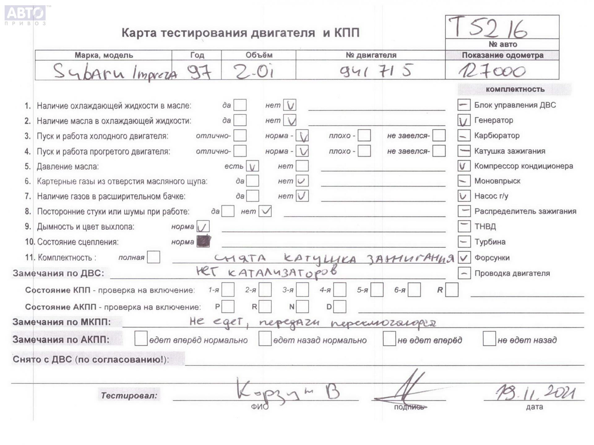 | Марка / Модель / Год: | Subaru Impreza 1997 |