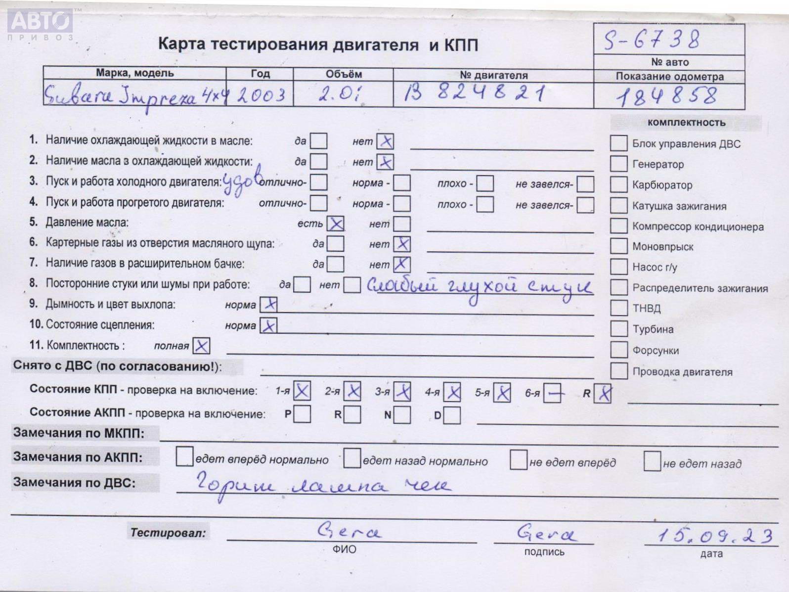 | Марка / Модель / Год: | Subaru Impreza 2003 |