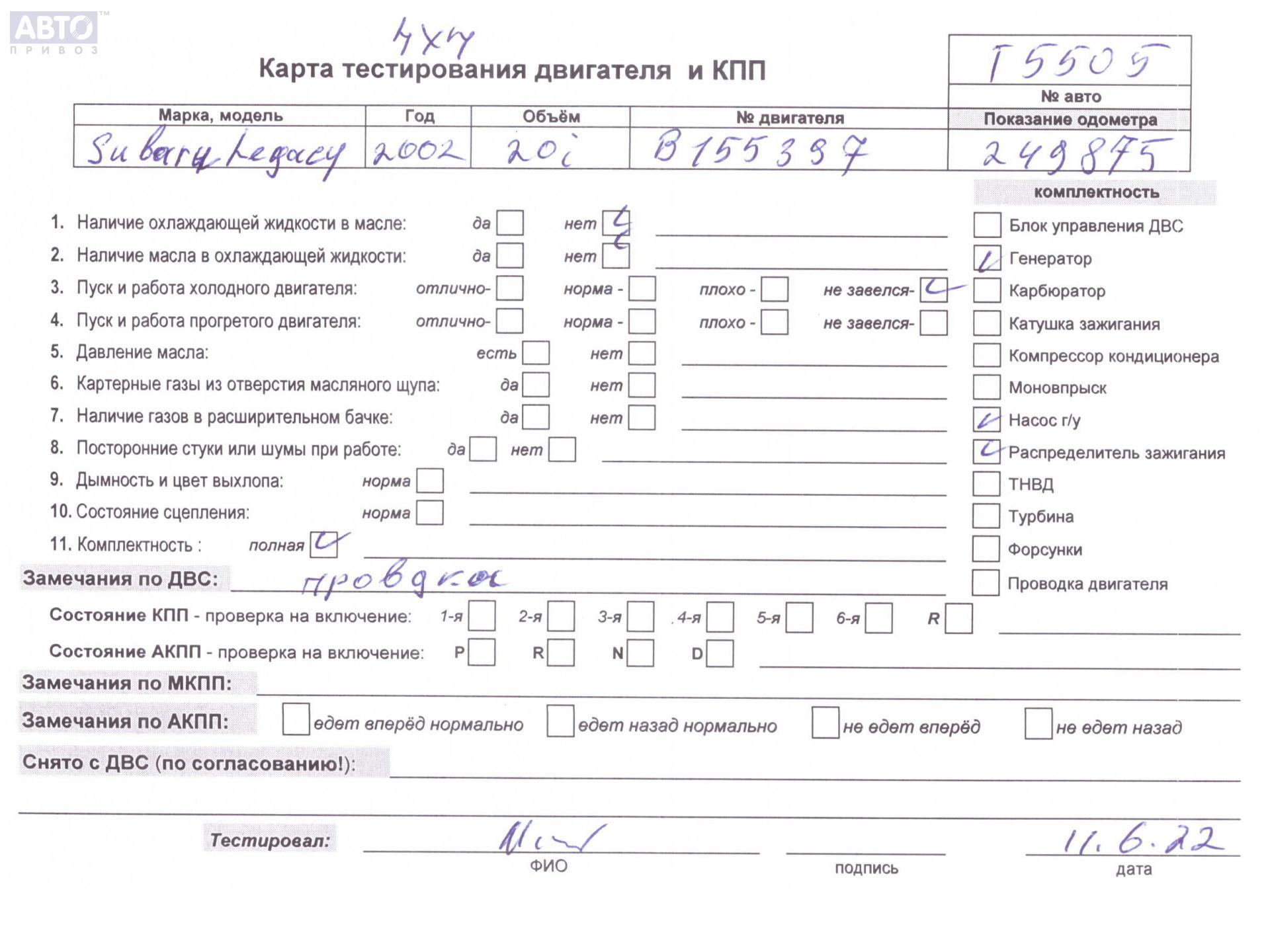 | Марка / Модель / Год: | Subaru Legacy 2001 |