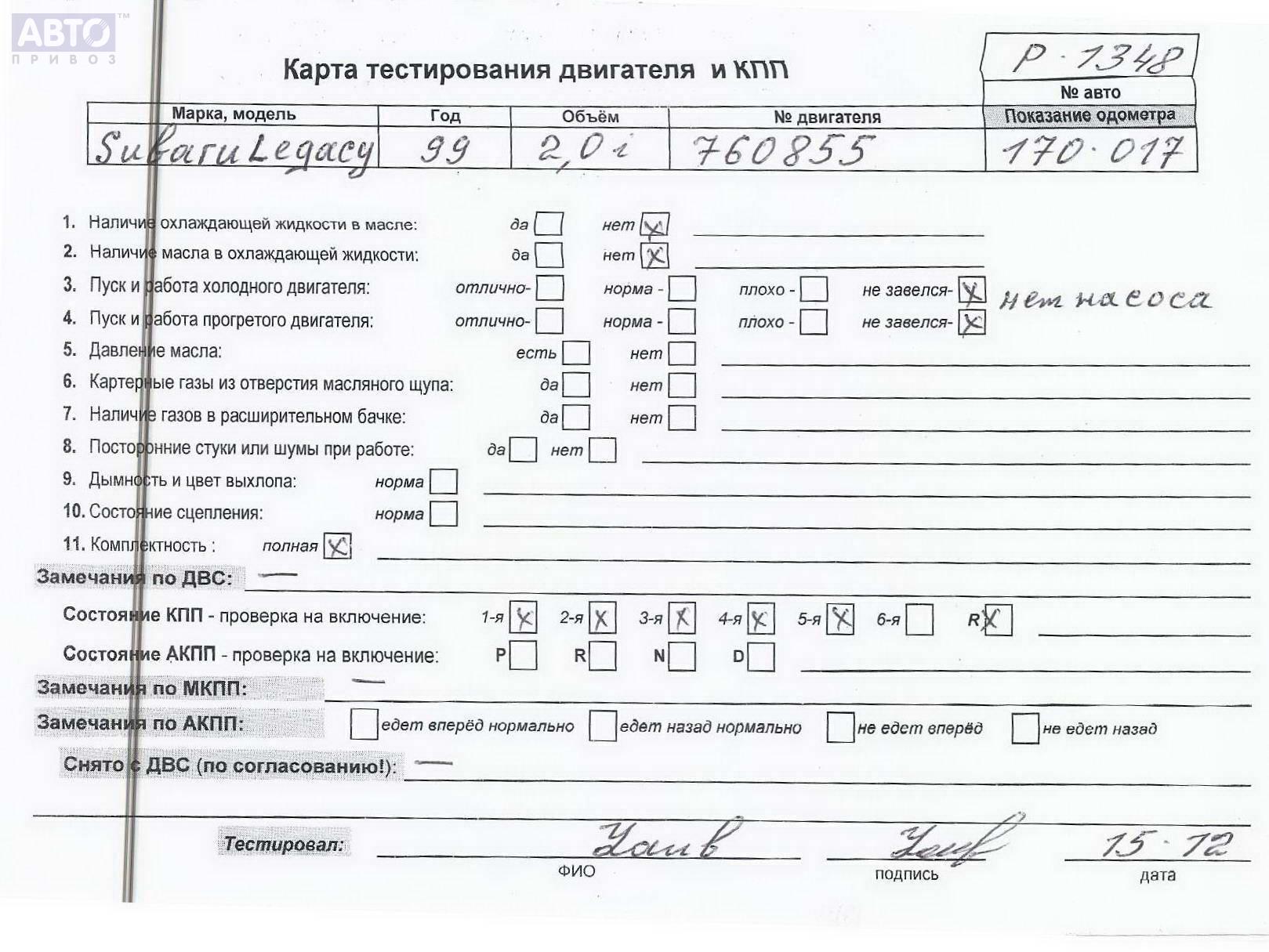 | Марка / Модель / Год: | Subaru Legacy 1999 |