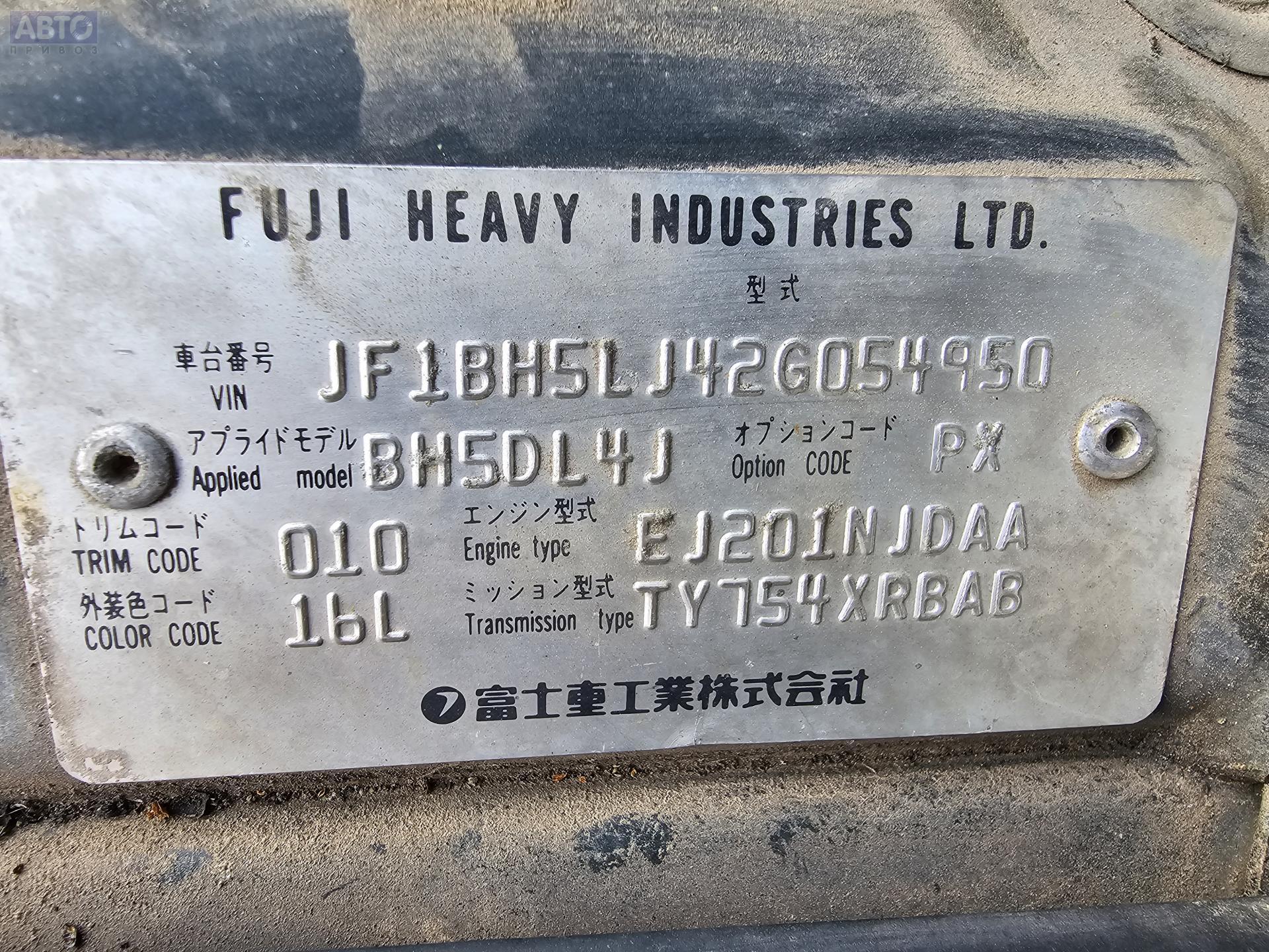 | Автомобиль / VIN: | T6659 JF1BH5LJ42G054950 |