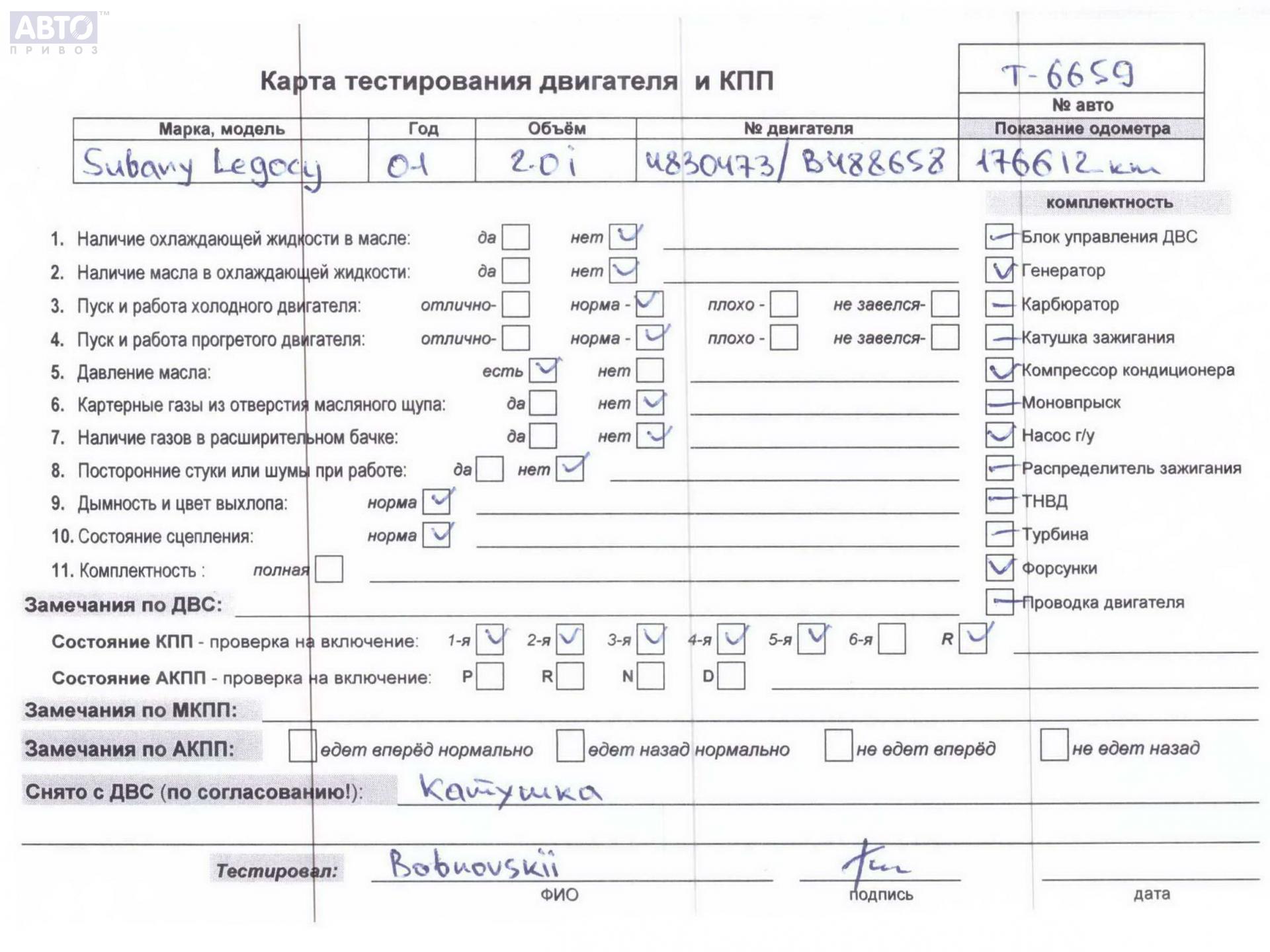 | Марка / Модель / Год: | Subaru Legacy 2001 |