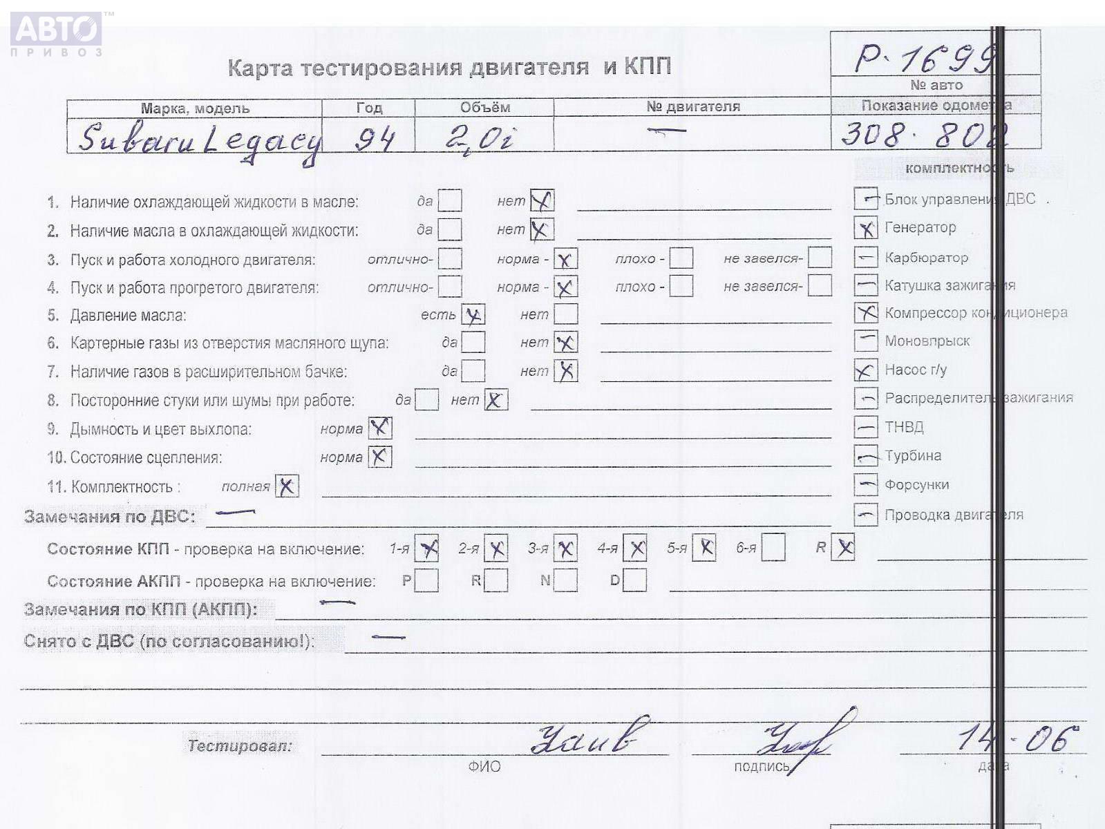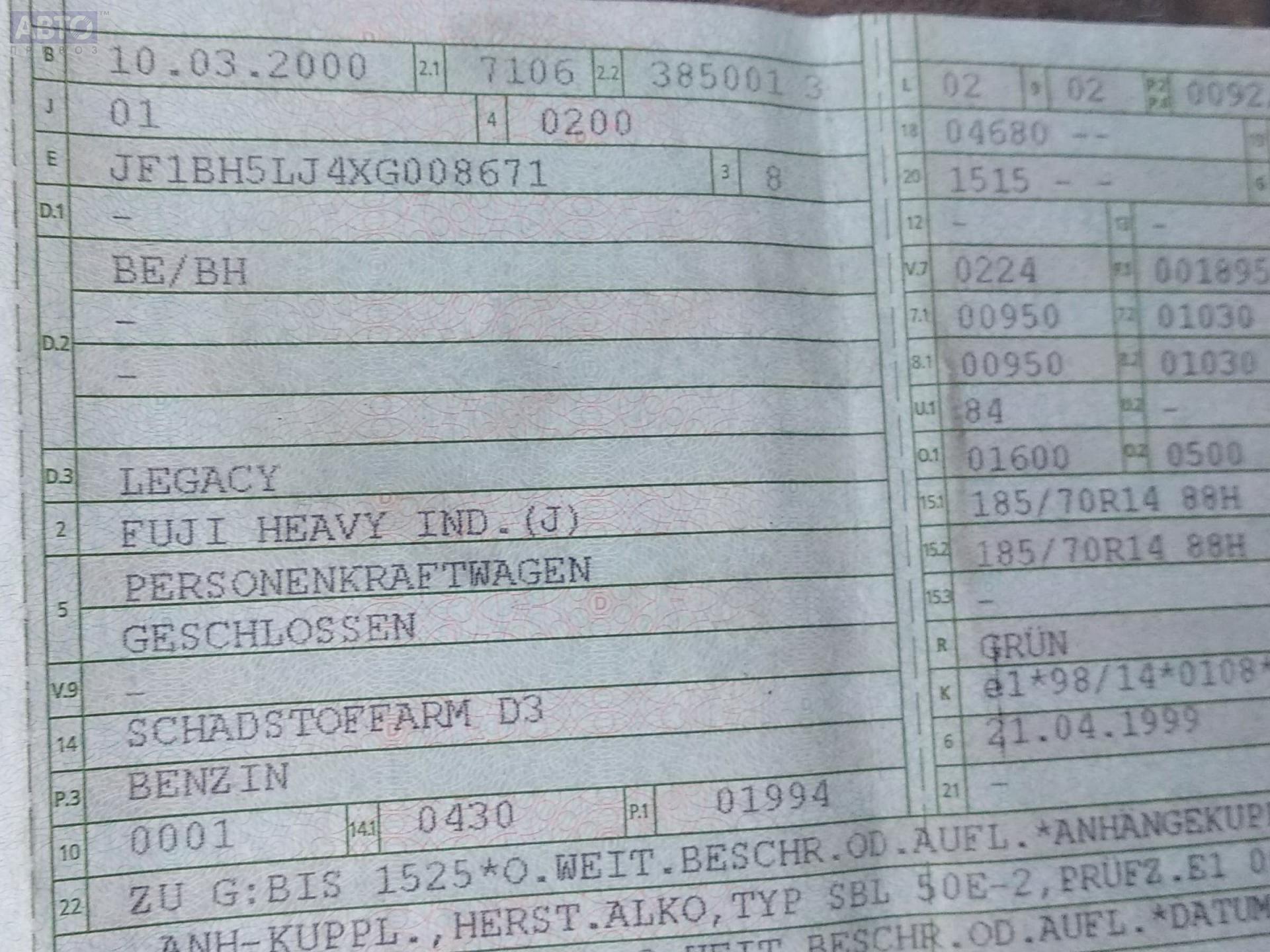 | Марка / Модель / Год: | Subaru Legacy 1999 |