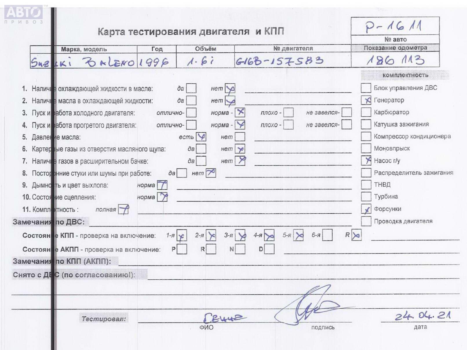 | Марка / Модель / Год: | Suzuki Baleno 1996 |