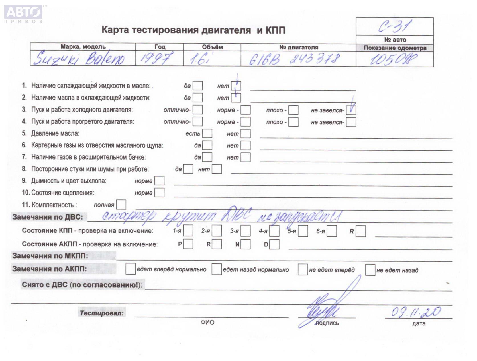 | Марка / Модель / Год: | Suzuki Baleno 1997 |