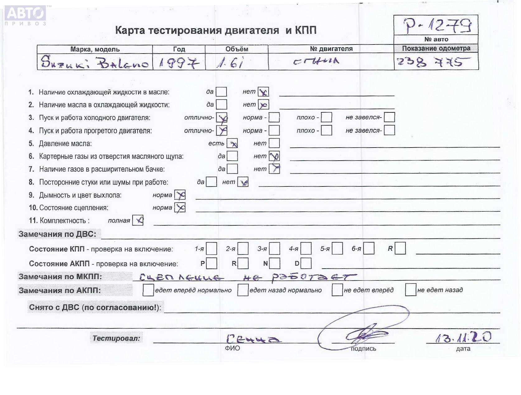 | Марка / Модель / Год: | Suzuki Baleno 1997 |