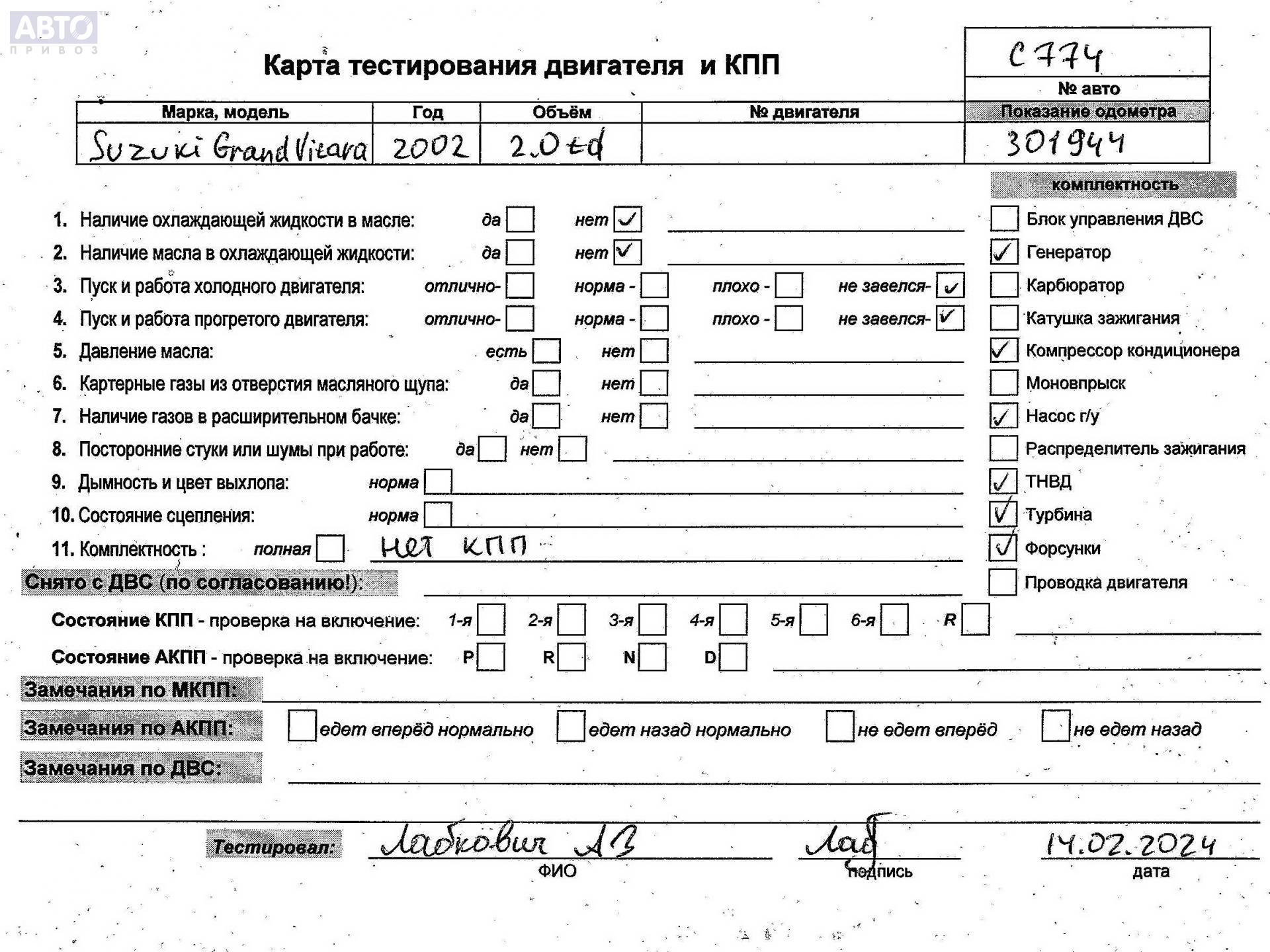 | Марка / Модель / Год: | Suzuki Grand Vitara (1997-2006) 2002 |