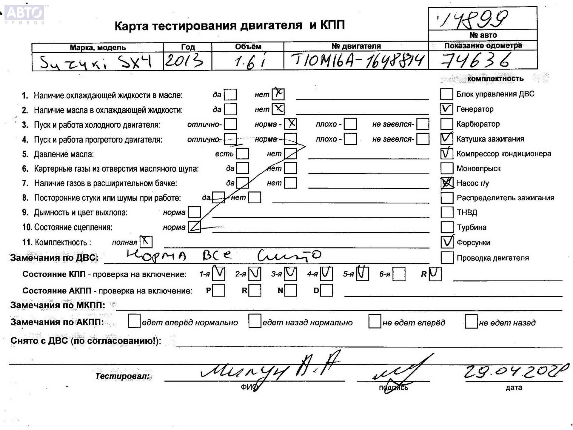| Марка / Модель / Год: | Suzuki SX4 2013 |