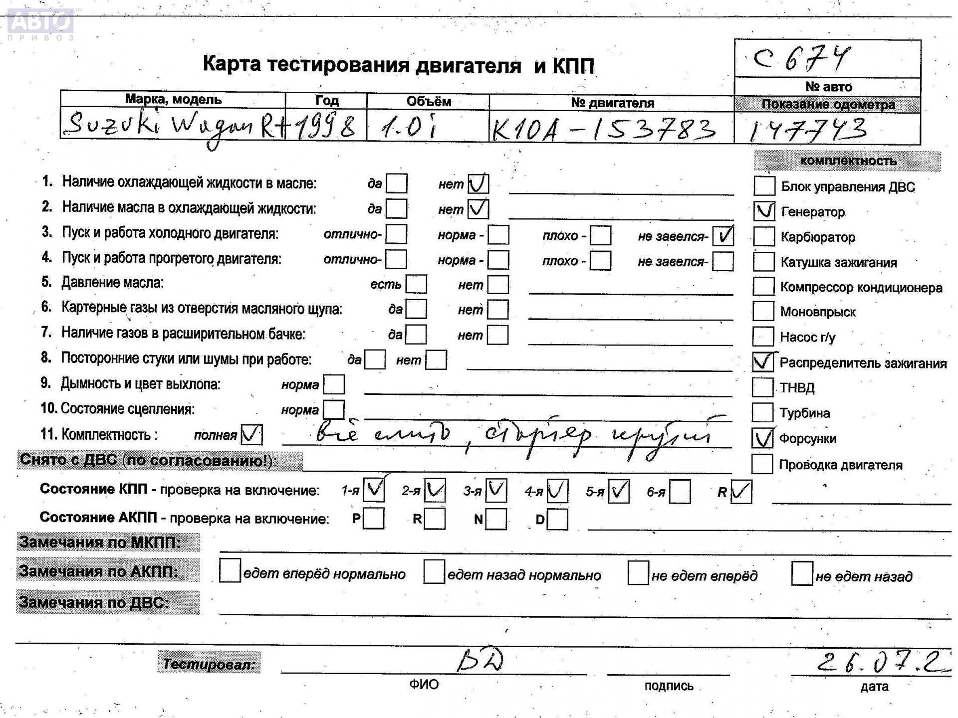 | Марка / Модель / Год: | Suzuki Wagon R+ 1998 |
