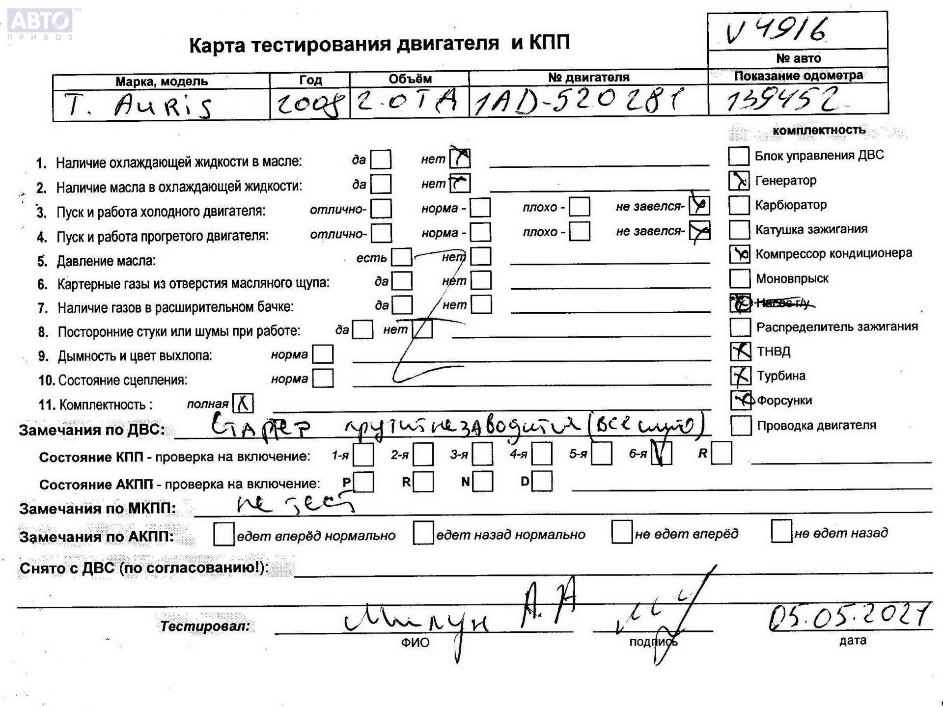 | Марка / Модель / Год: | Toyota Auris 2008 |