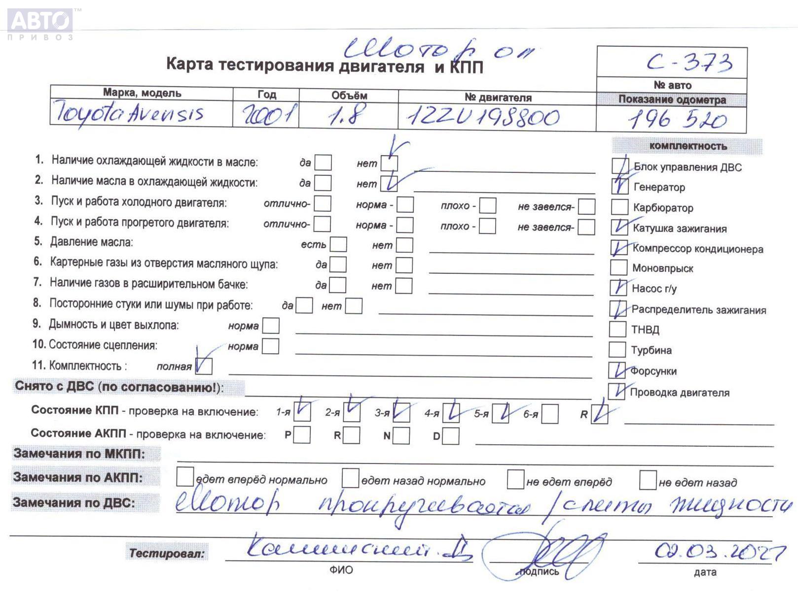 | Марка / Модель / Год: | Toyota Avensis (1997-2003) 2001 |