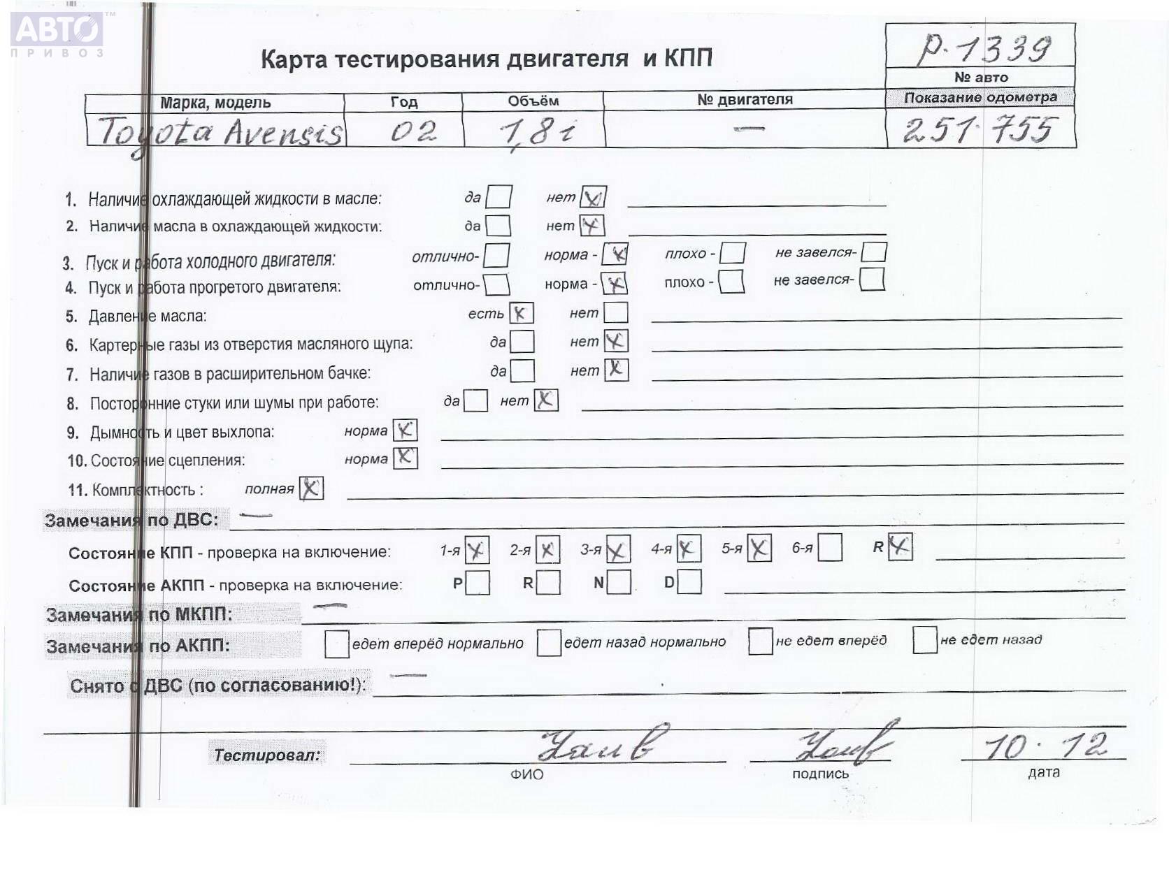 | Марка / Модель / Год: | Toyota Avensis (2003-2008) 2003 |