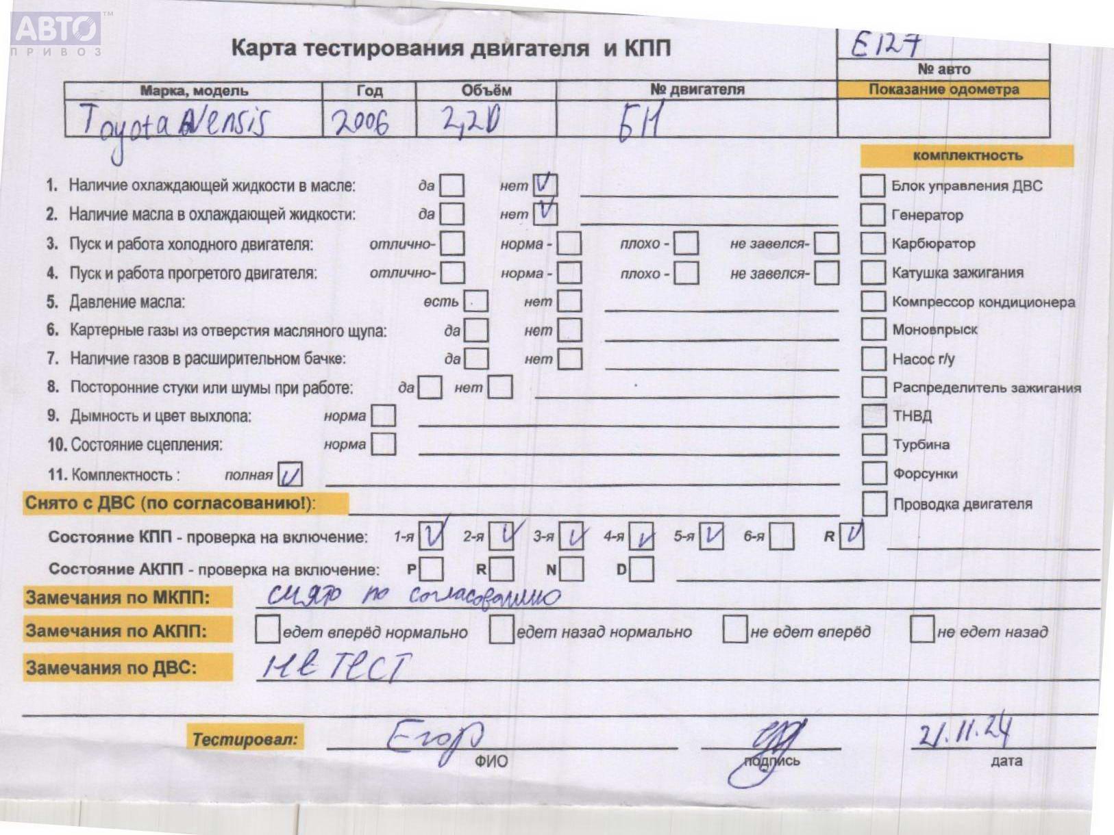 | Марка / Модель / Год: | Toyota Avensis (2003-2008) 2006 |
