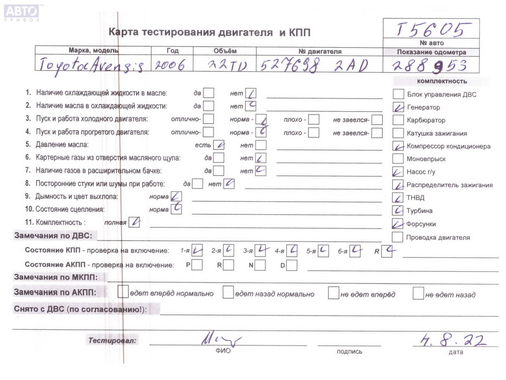 | Марка / Модель / Год: | Toyota Avensis (2003-2008) 2006 |