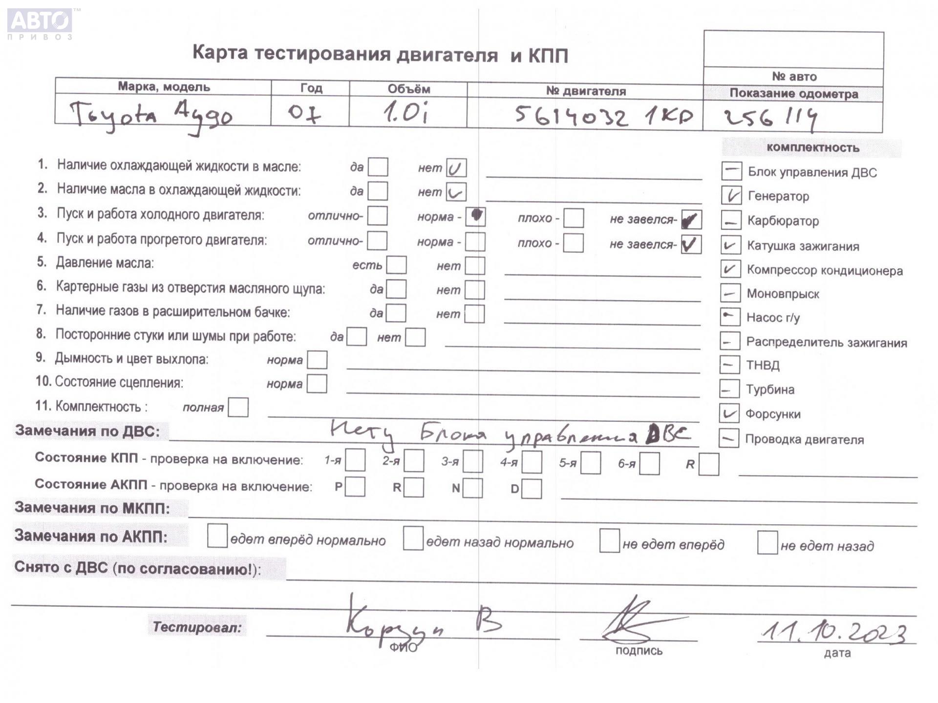 | Марка / Модель / Год: | Toyota Aygo 2007 |