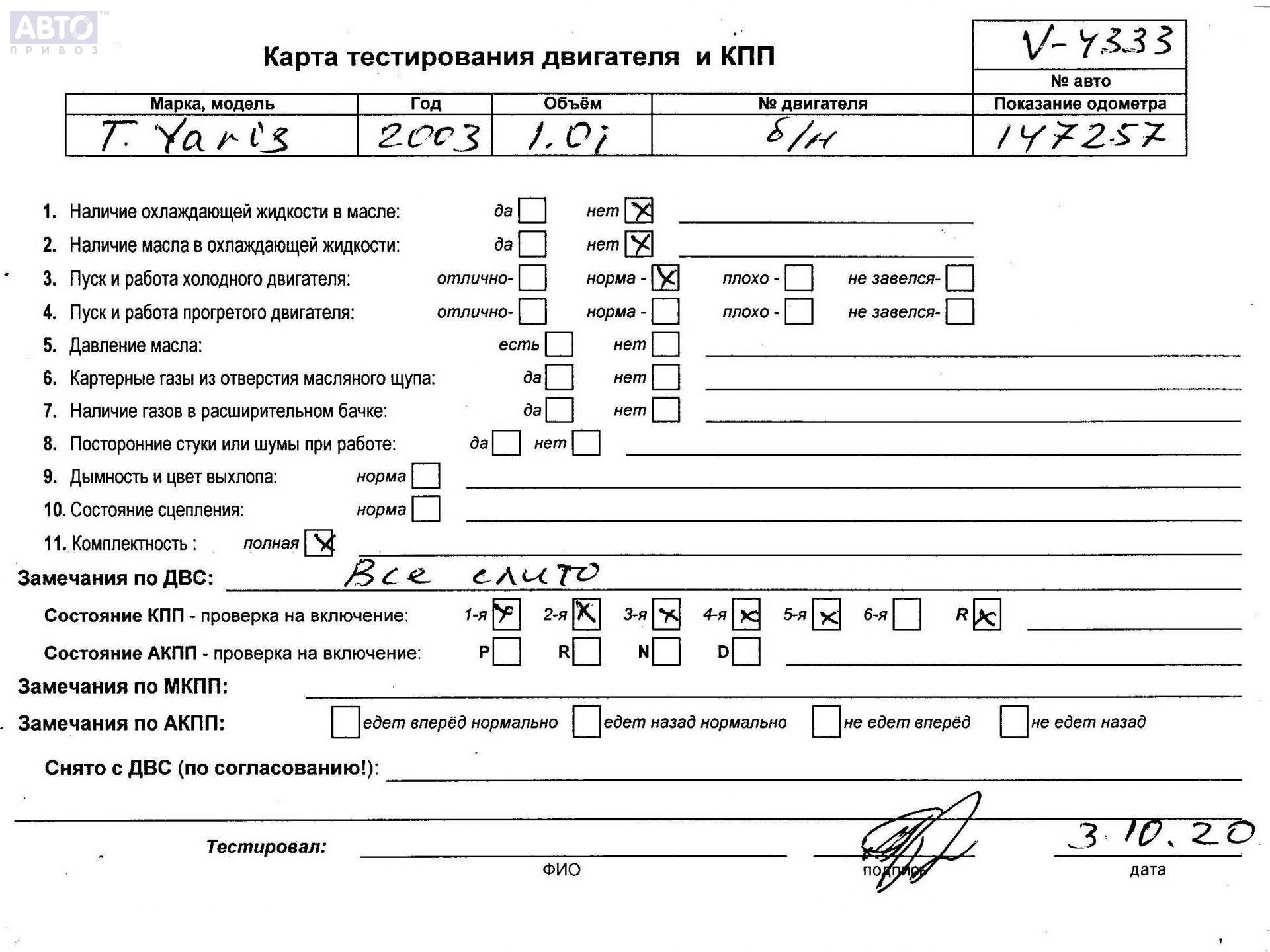 | Марка / Модель / Год: | Toyota Yaris (1999-2005) 2003 |