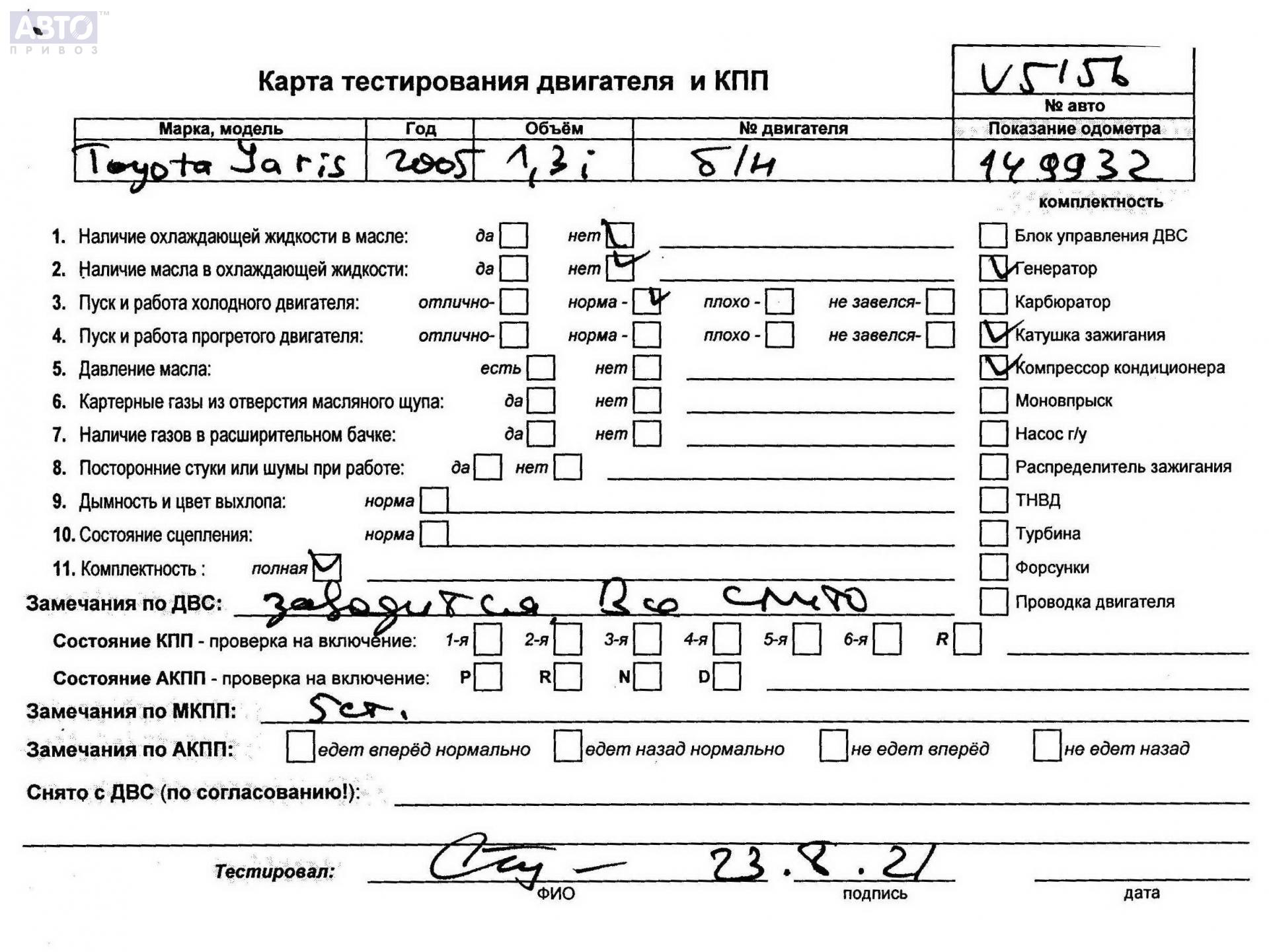| Марка / Модель / Год: | Toyota Yaris (1999-2005) 2005 |