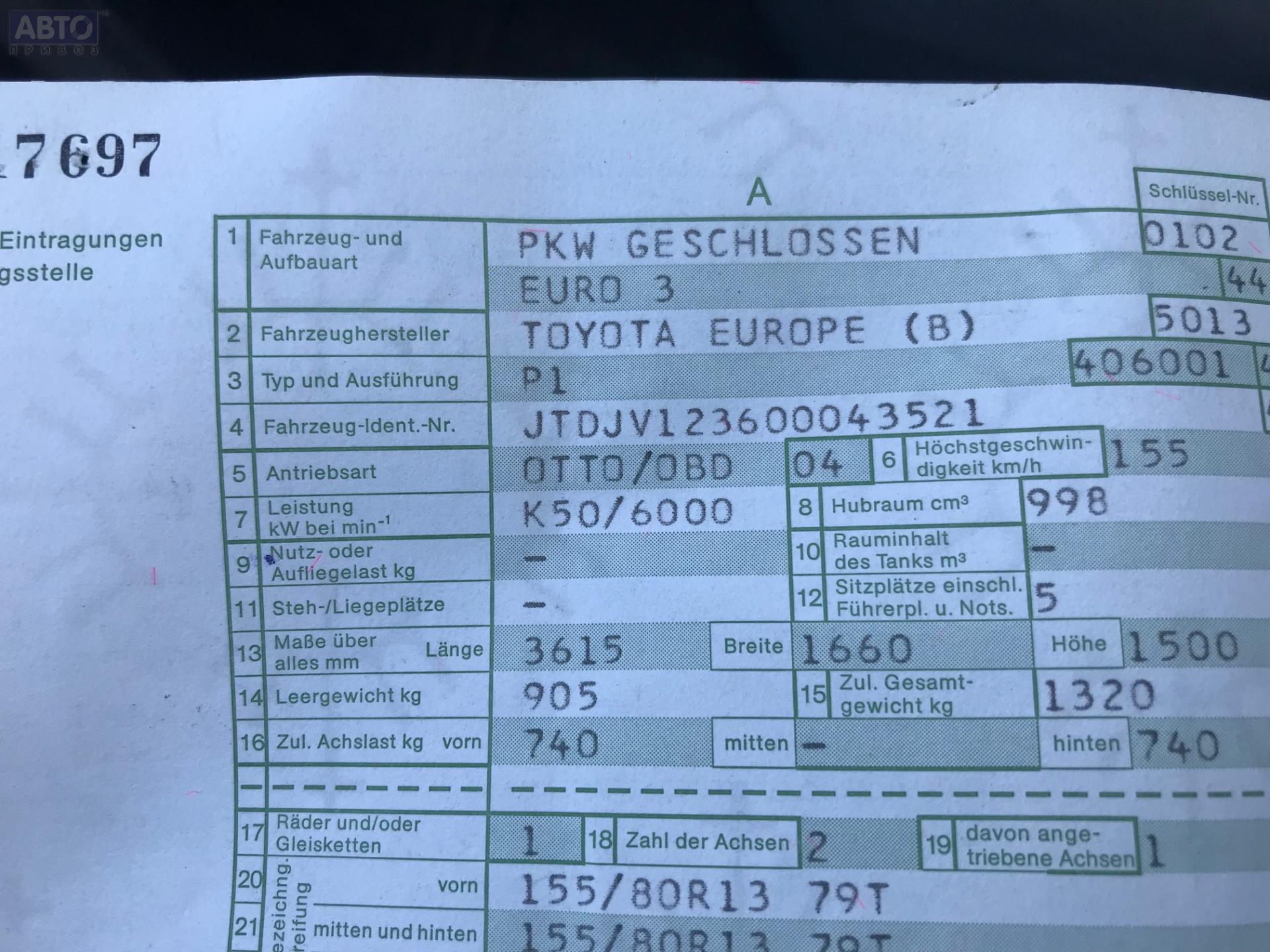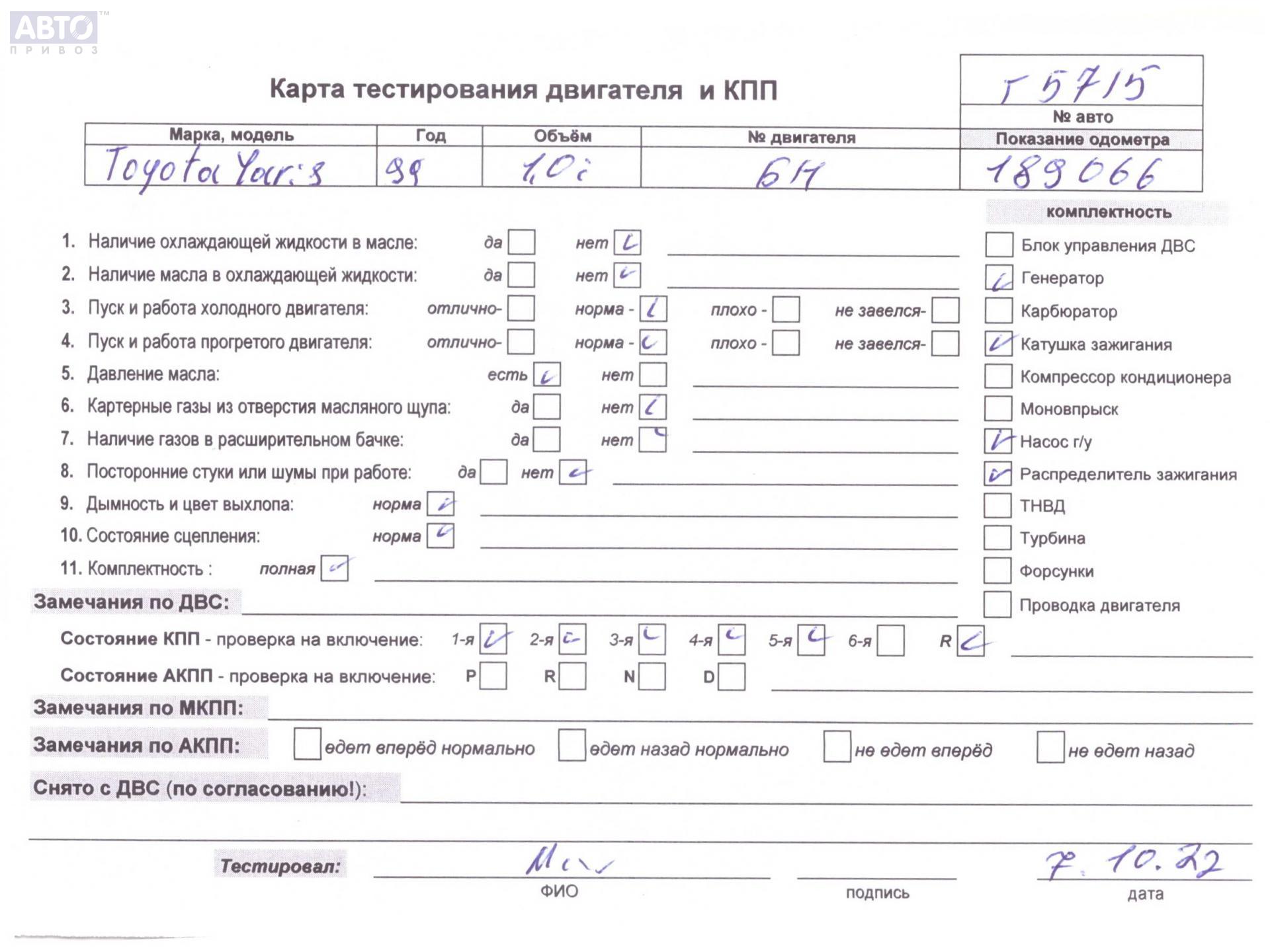 | Марка / Модель / Год: | Toyota Yaris (1999-2005) 1999 |