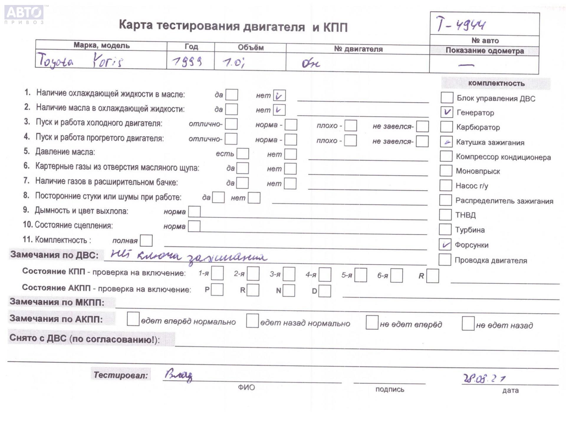 | Автомобиль / VIN: | T4944 JTDJV183000400568 |