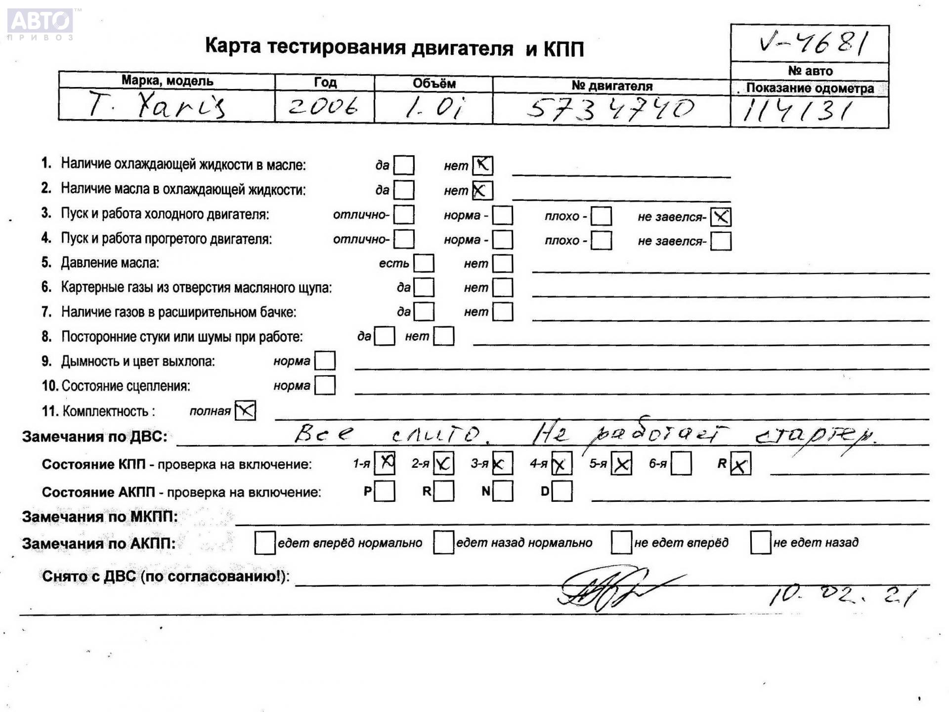 | Марка / Модель / Год: | Toyota Yaris (2005-2011) 2006 |