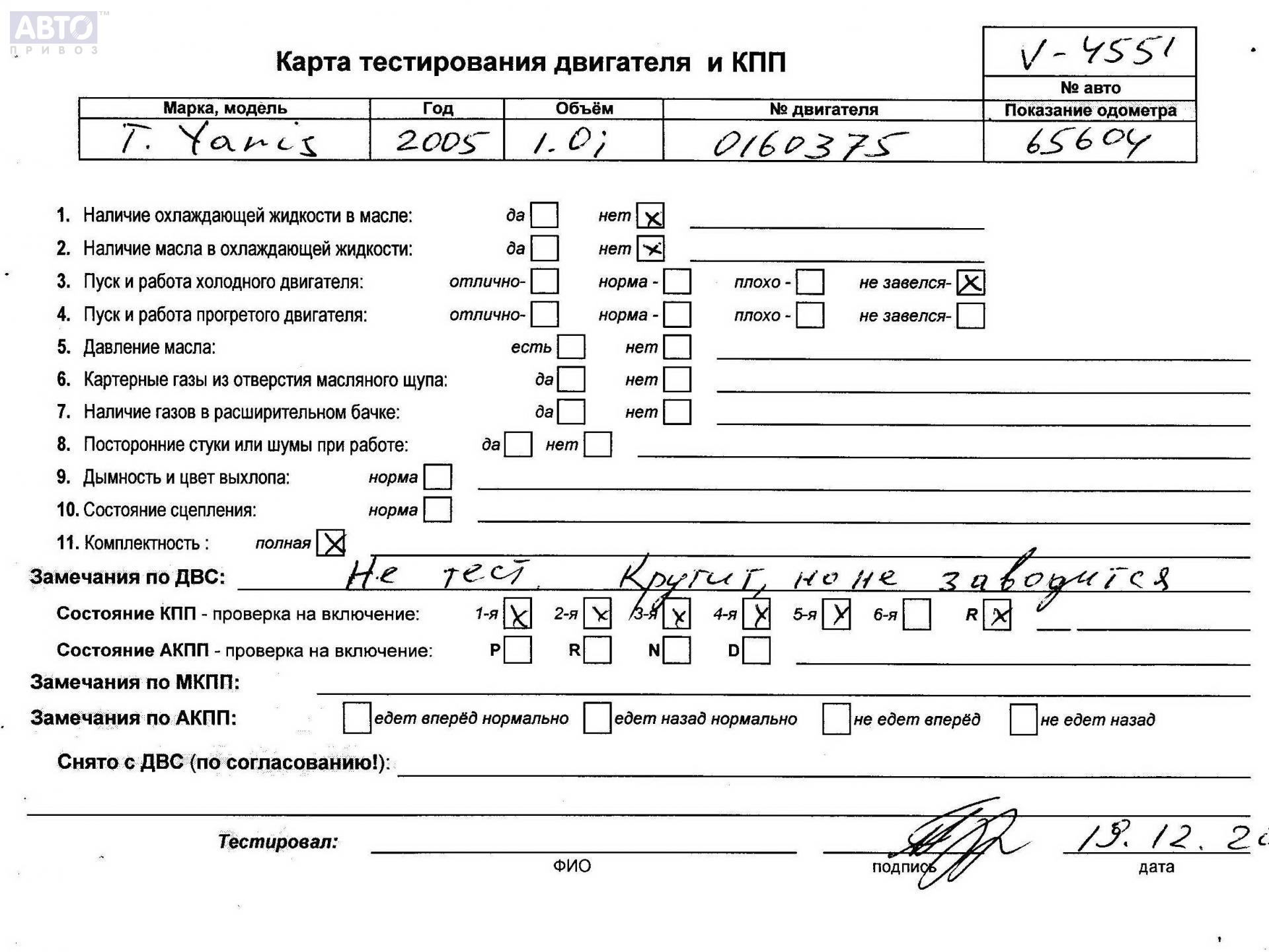 | Автомобиль / VIN: | V4551 JTDKG963000015771 |