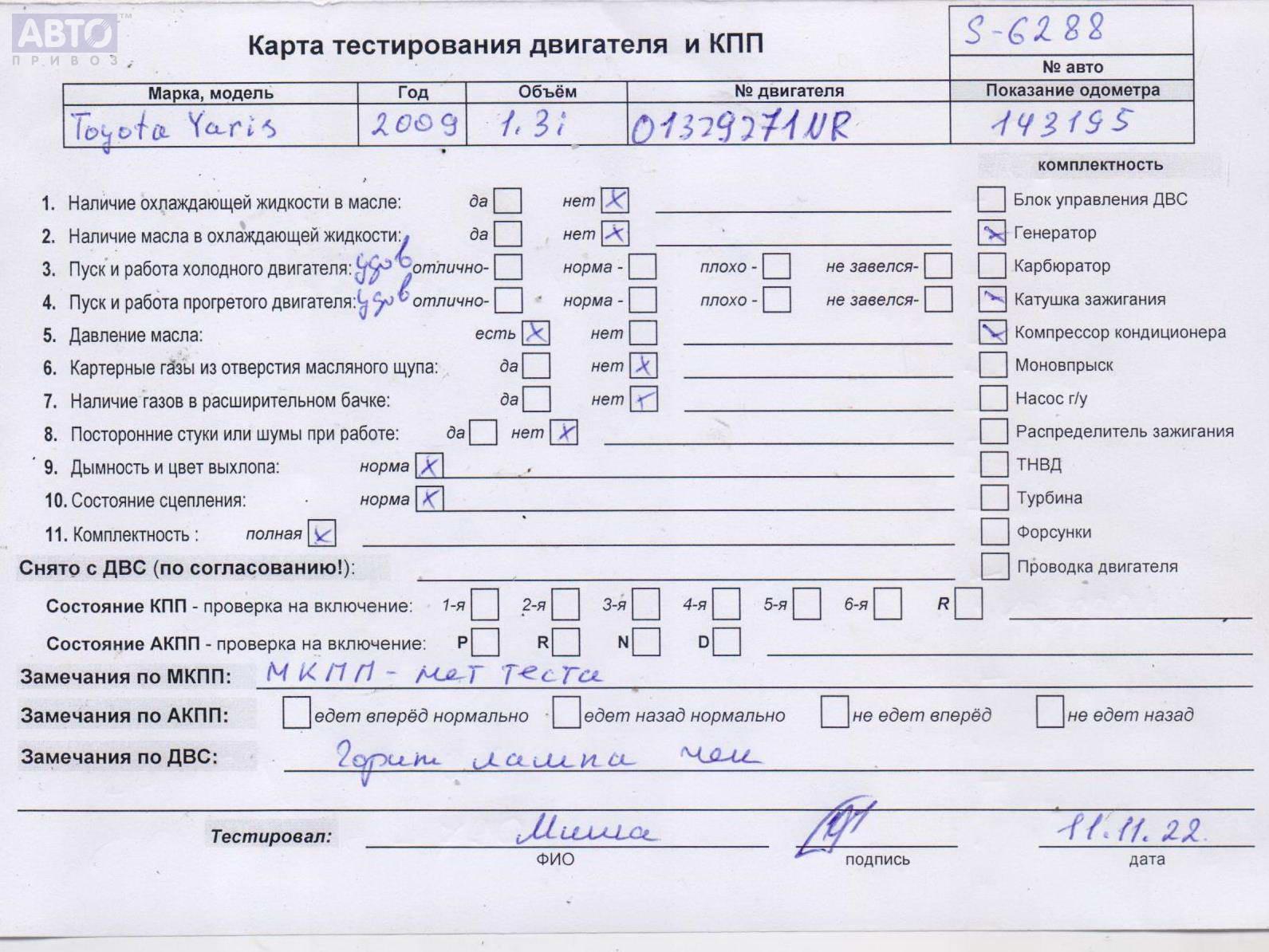 | Марка / Модель / Год: | Toyota Yaris (2005-2011) 2009 |