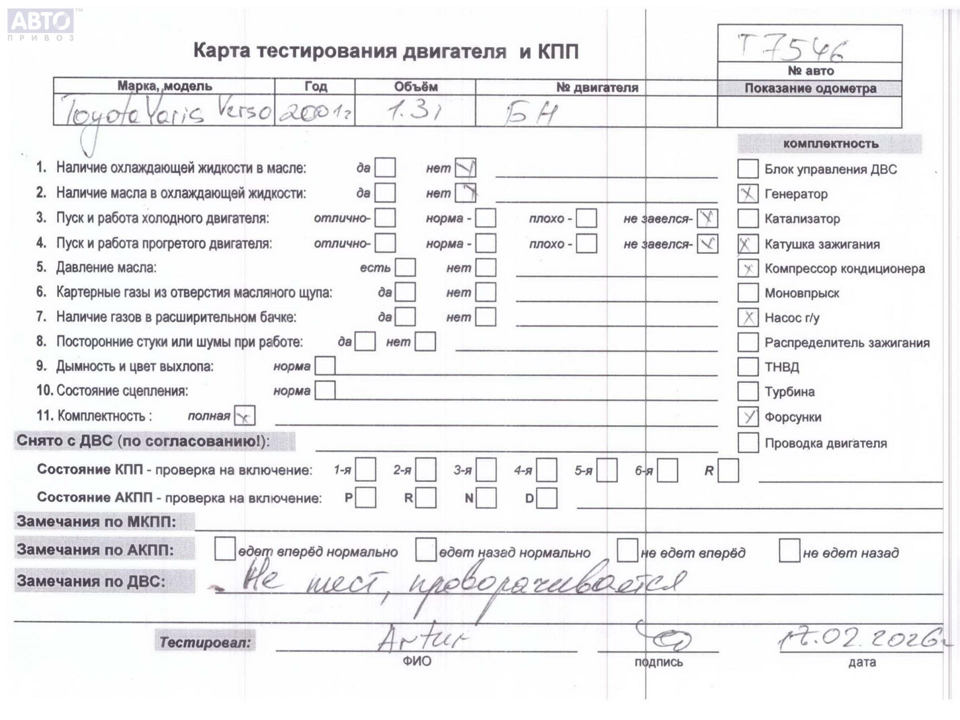 | Автомобиль / VIN: | T7546 JTDKW283100220894 |