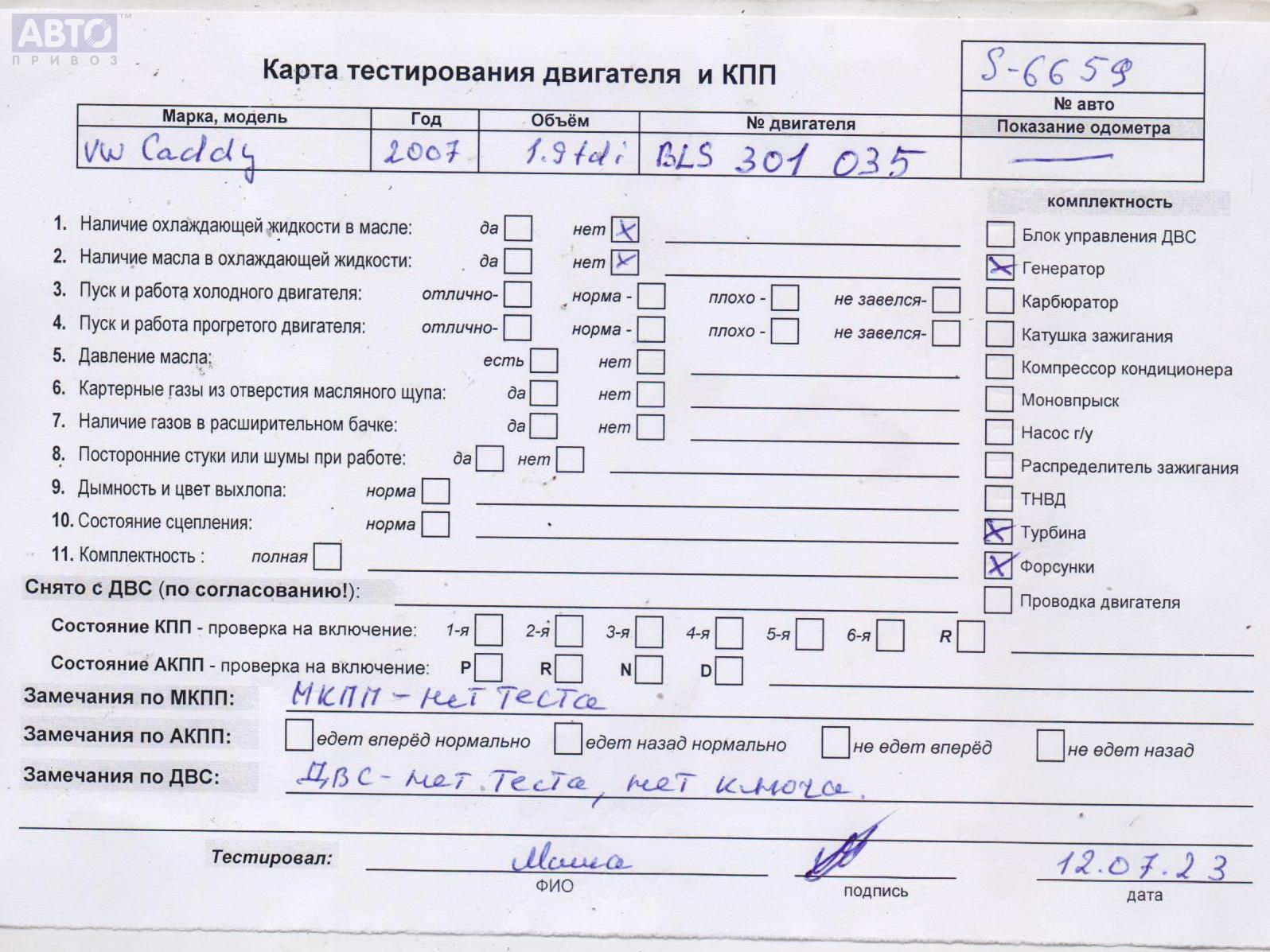 | Марка / Модель / Год: | Volkswagen Caddy (2004-2010) 2007 |