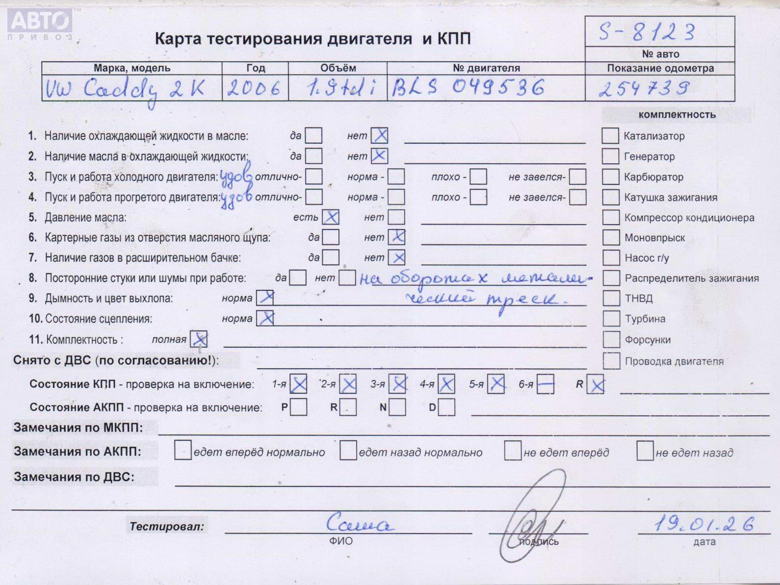 | Марка / Модель / Год: | Volkswagen Caddy (2004-2010) 2006 |