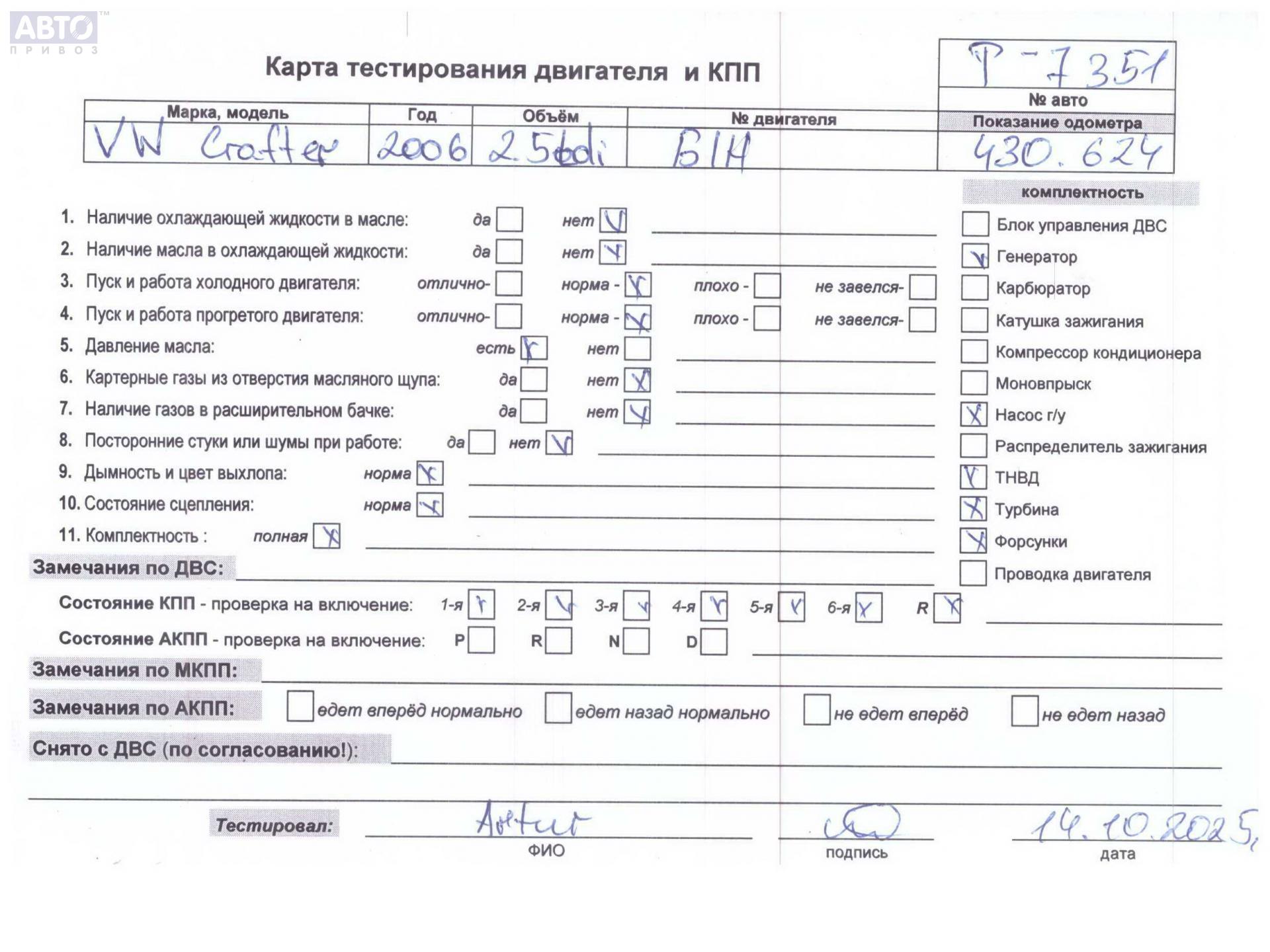 | Марка / Модель / Год: | Volkswagen Crafter 2006 |