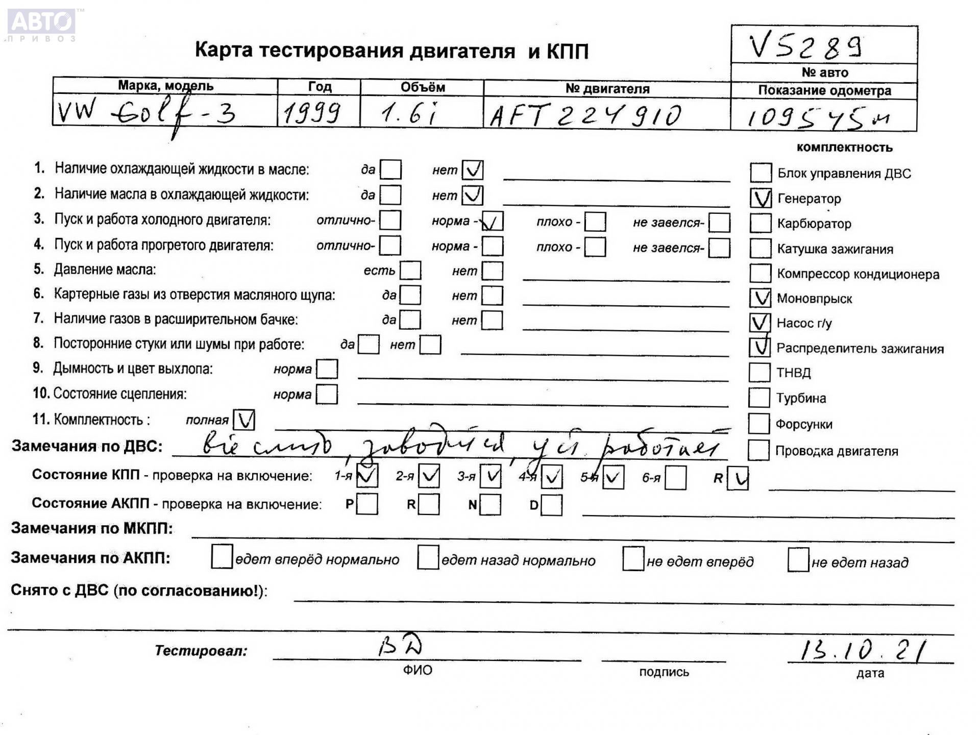 | Автомобиль / VIN: | V5289 WVWZZZ1EZYK007795 |