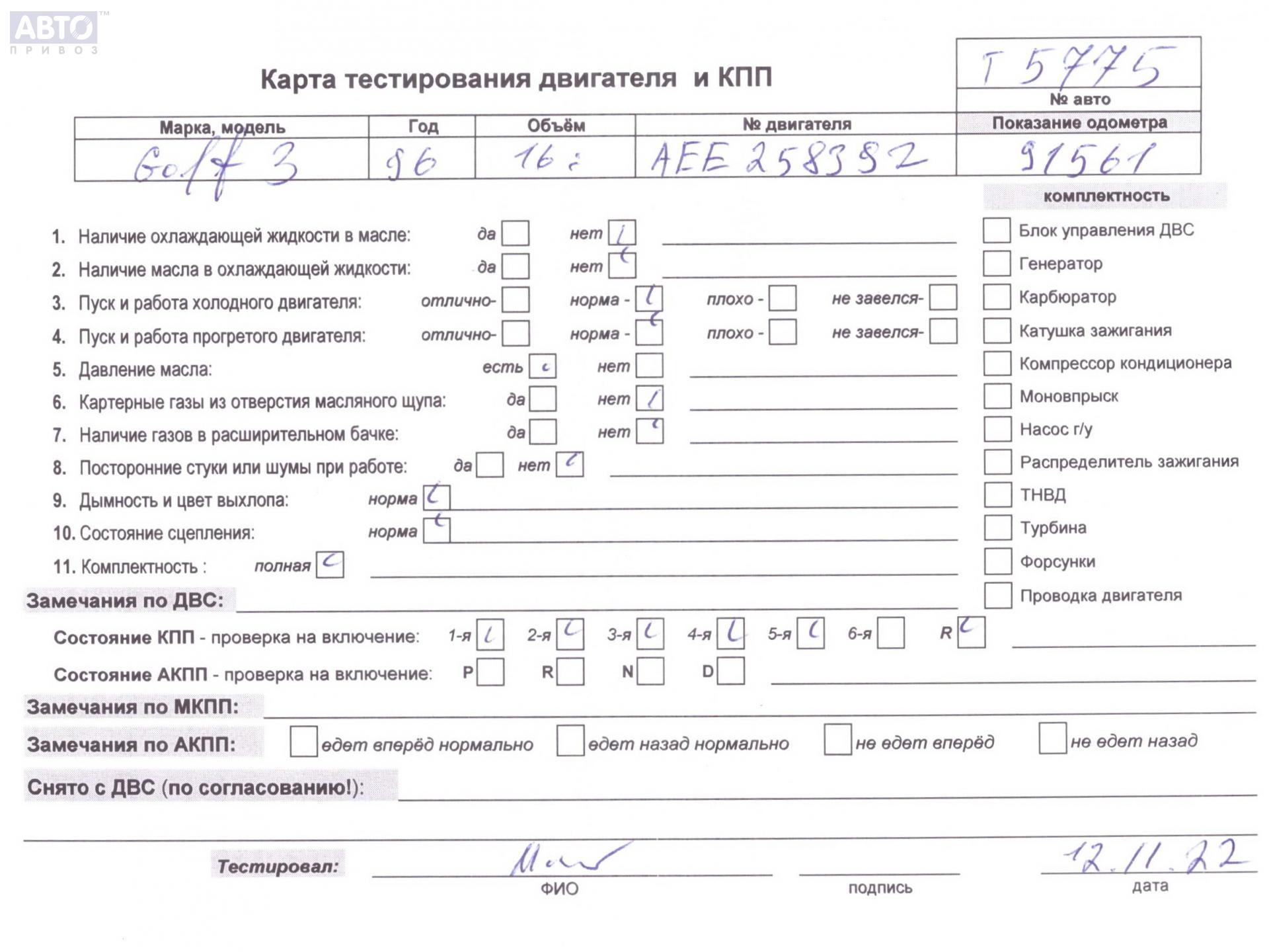 | Марка / Модель / Год: | Volkswagen Golf-3 1996 |