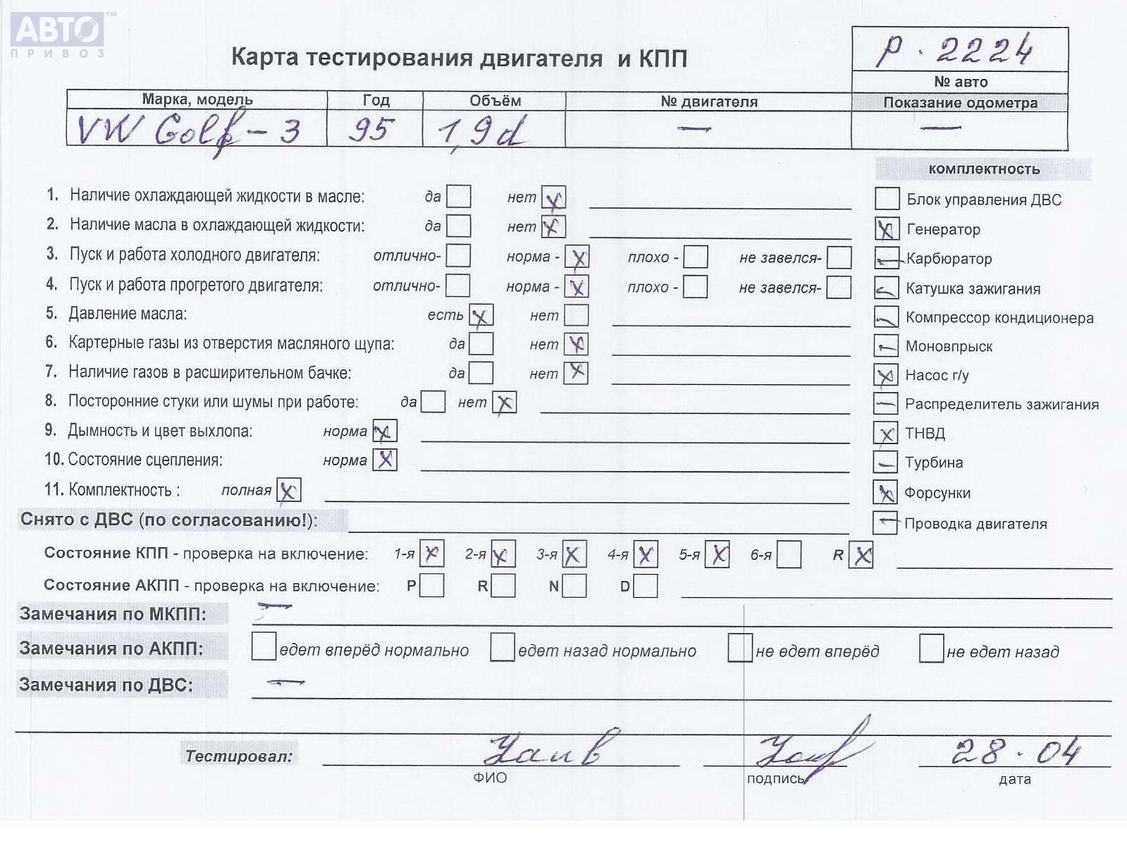 | Марка / Модель / Год: | Volkswagen Golf-3 1995 |