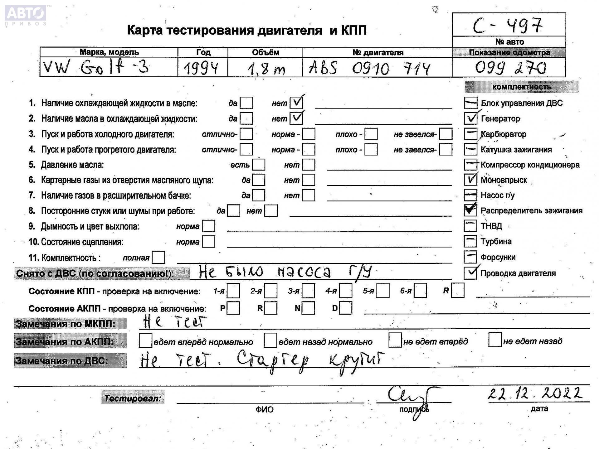 | Автомобиль / VIN: | C0497 WVWZZZ1HZRW632150 |