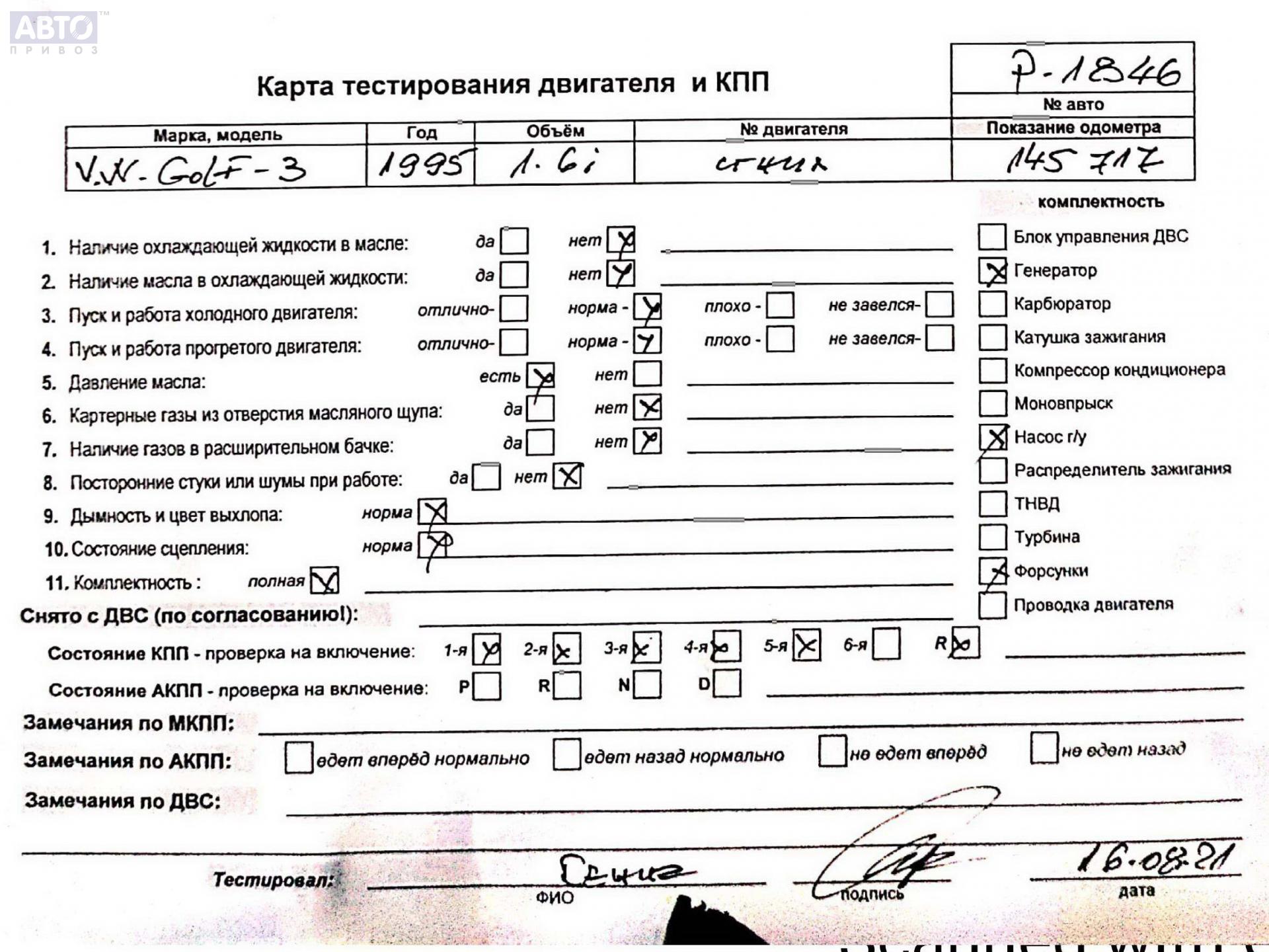 | Марка / Модель / Год: | Volkswagen Golf-3 1995 |