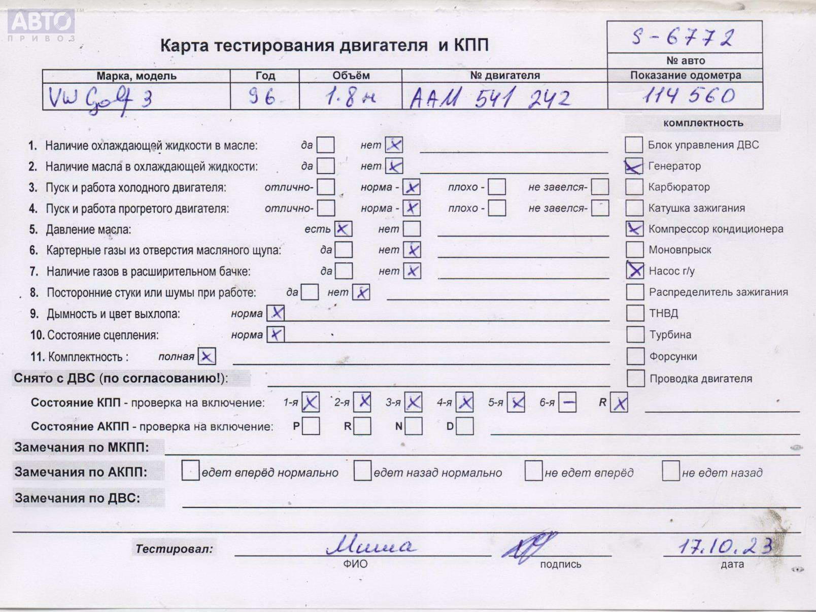 | Марка / Модель / Год: | Volkswagen Golf-3 1996 |
