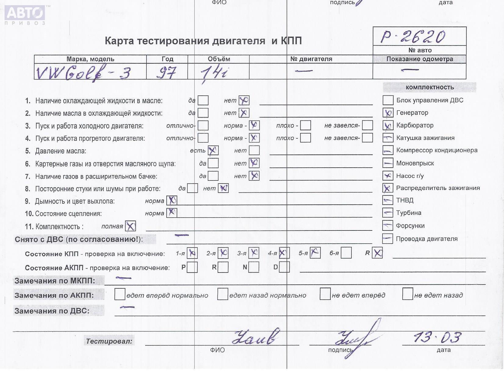 | Марка / Модель / Год: | Volkswagen Golf-3 1997 |