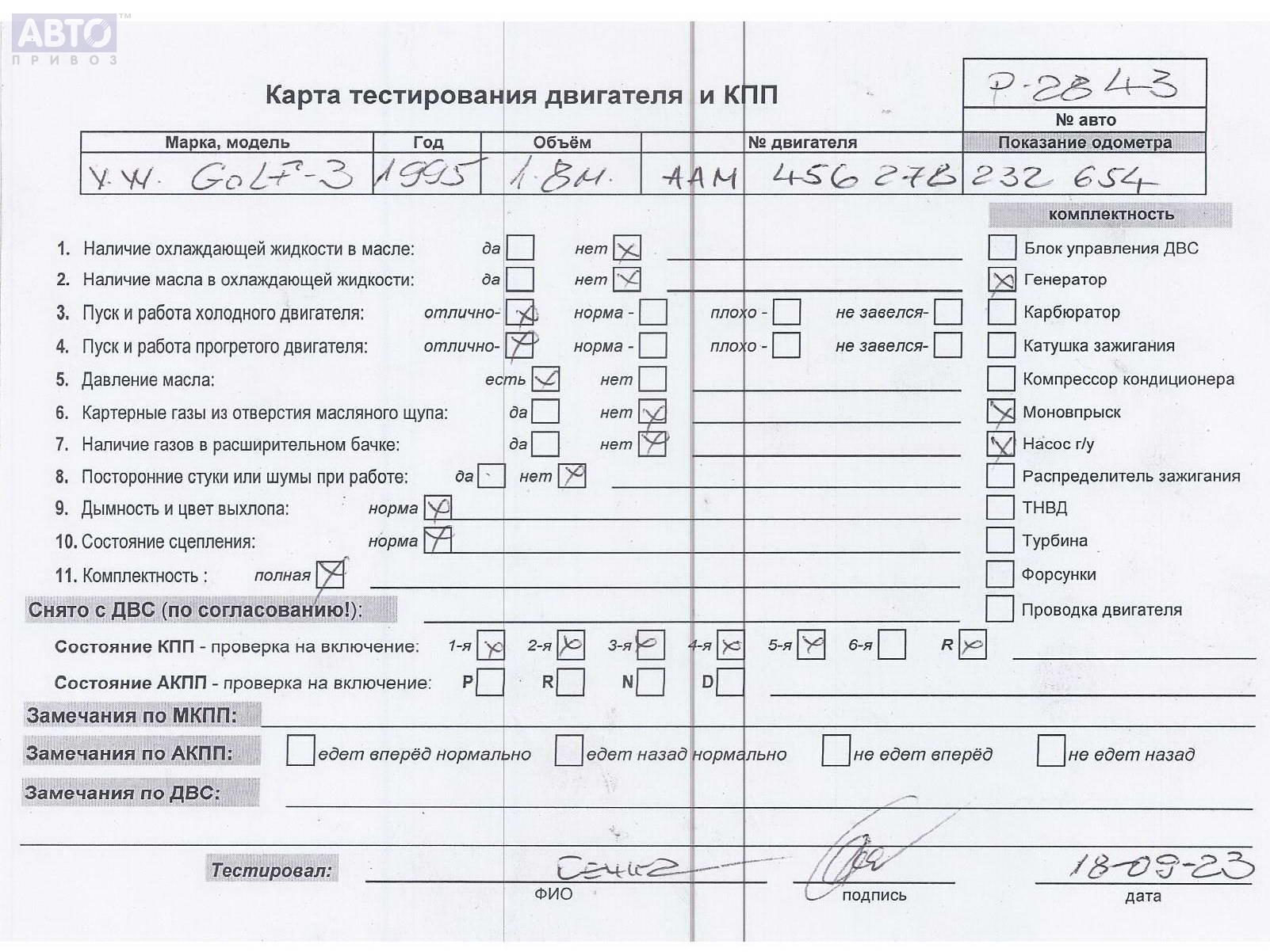 | Марка / Модель / Год: | Volkswagen Golf-3 1995 |