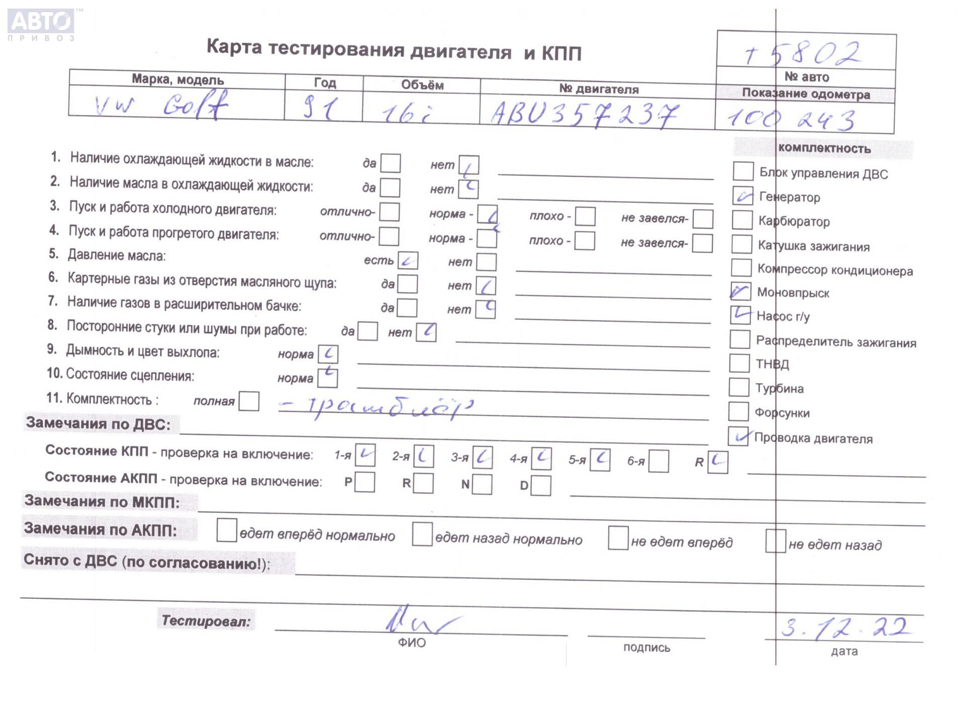 | Марка / Модель / Год: | Volkswagen Golf-3 1991 |