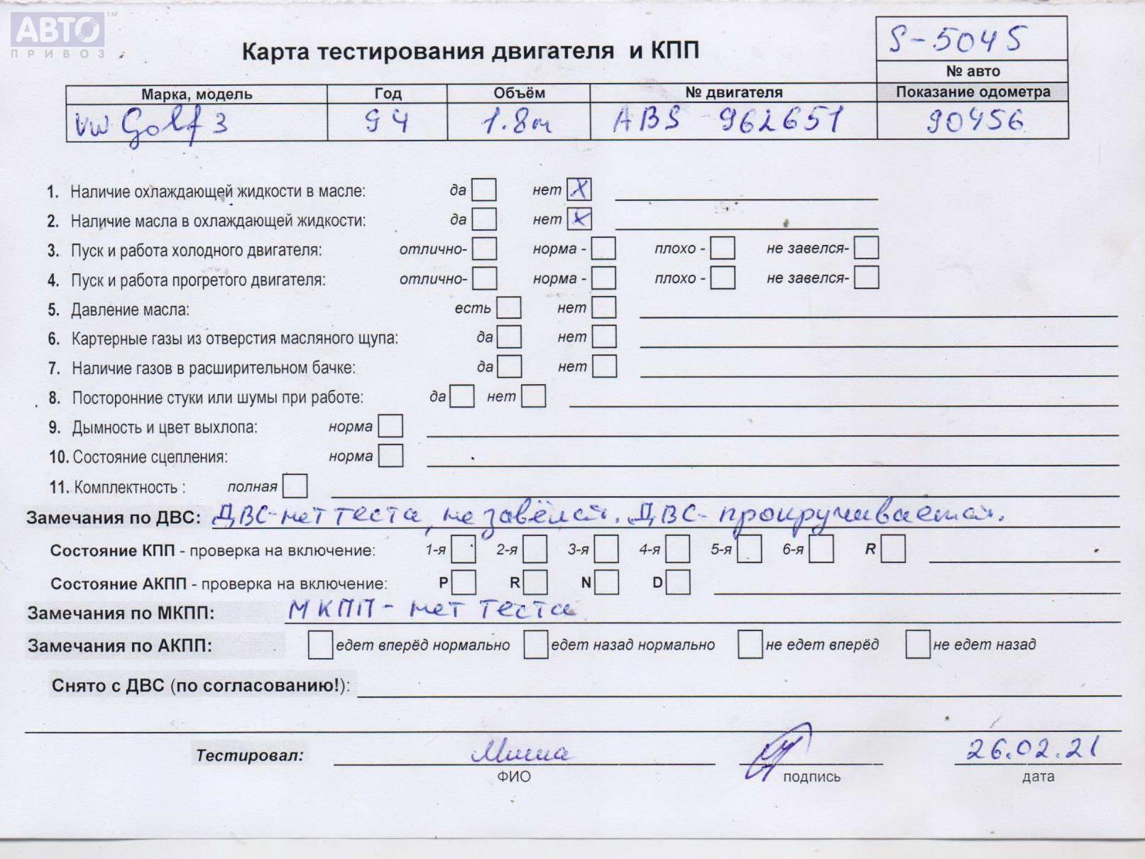| Марка / Модель / Год: | Volkswagen Golf-3 1994 |