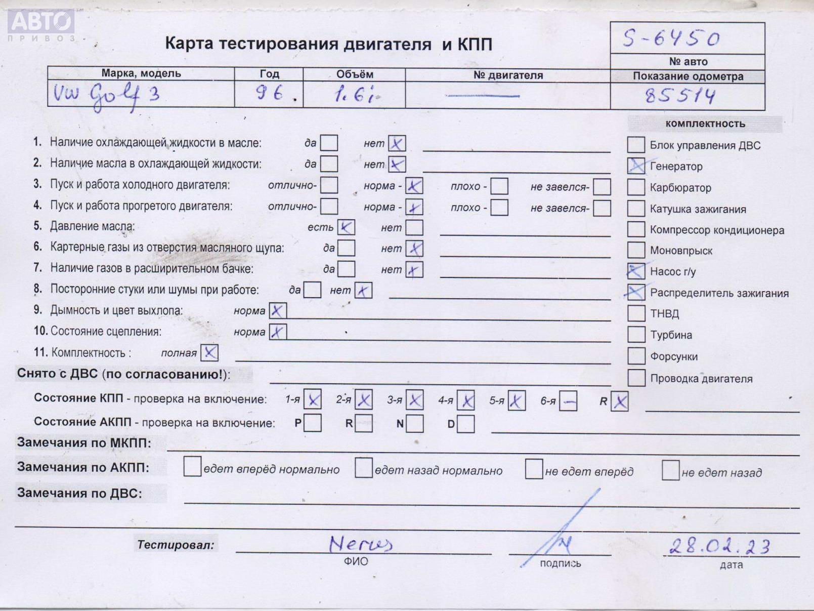 | Марка / Модель / Год: | Volkswagen Golf-3 1996 |